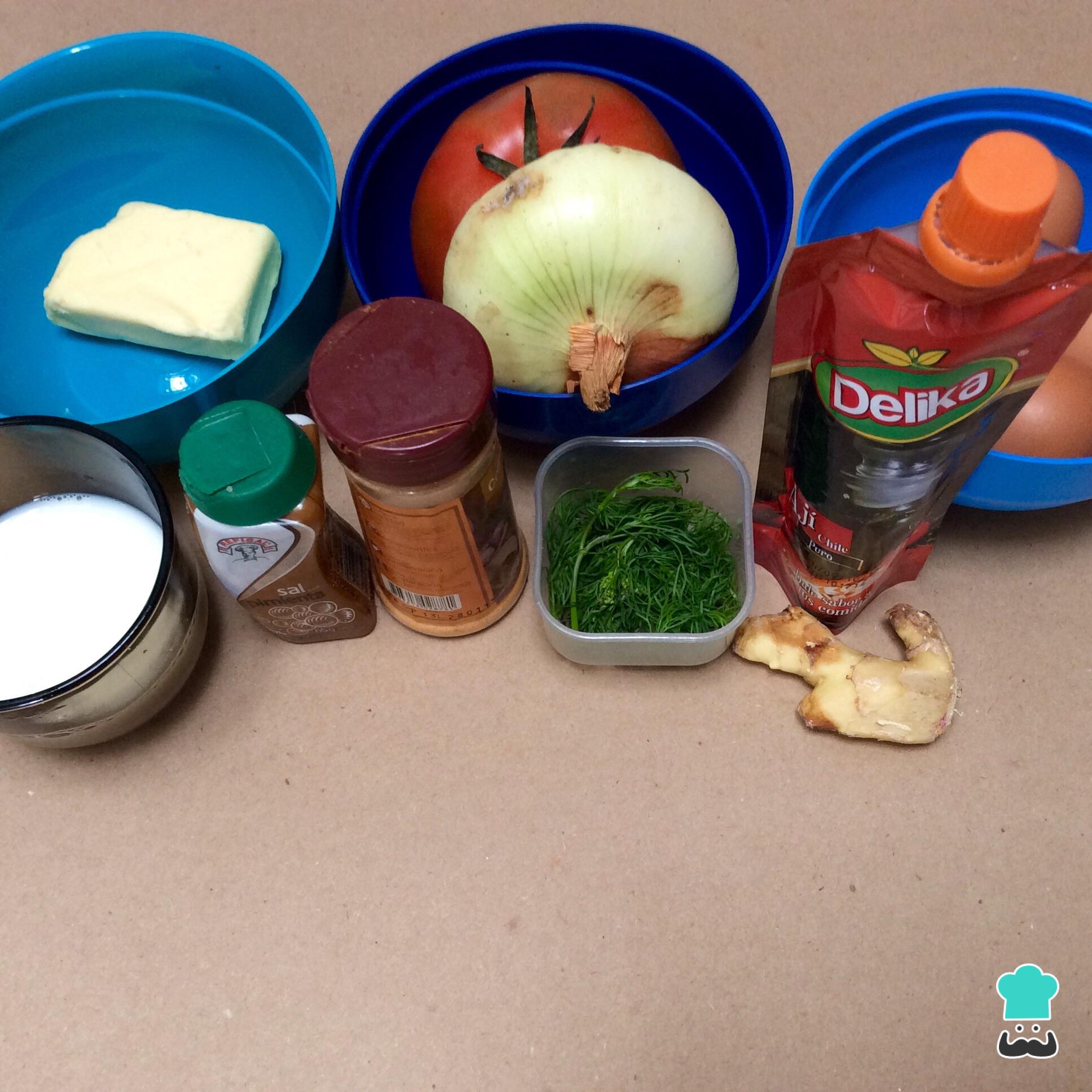 Para preparar estos deliciosos huevos parsi lo primero que debes hacer es alistar todos los ingredientes, recuerda que el ají y el cilantro son al gusto.