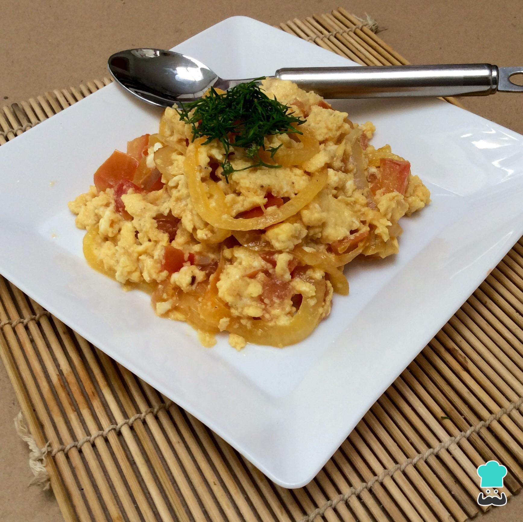 Cómo hacer Huevos revueltos con tomate y cebolla: