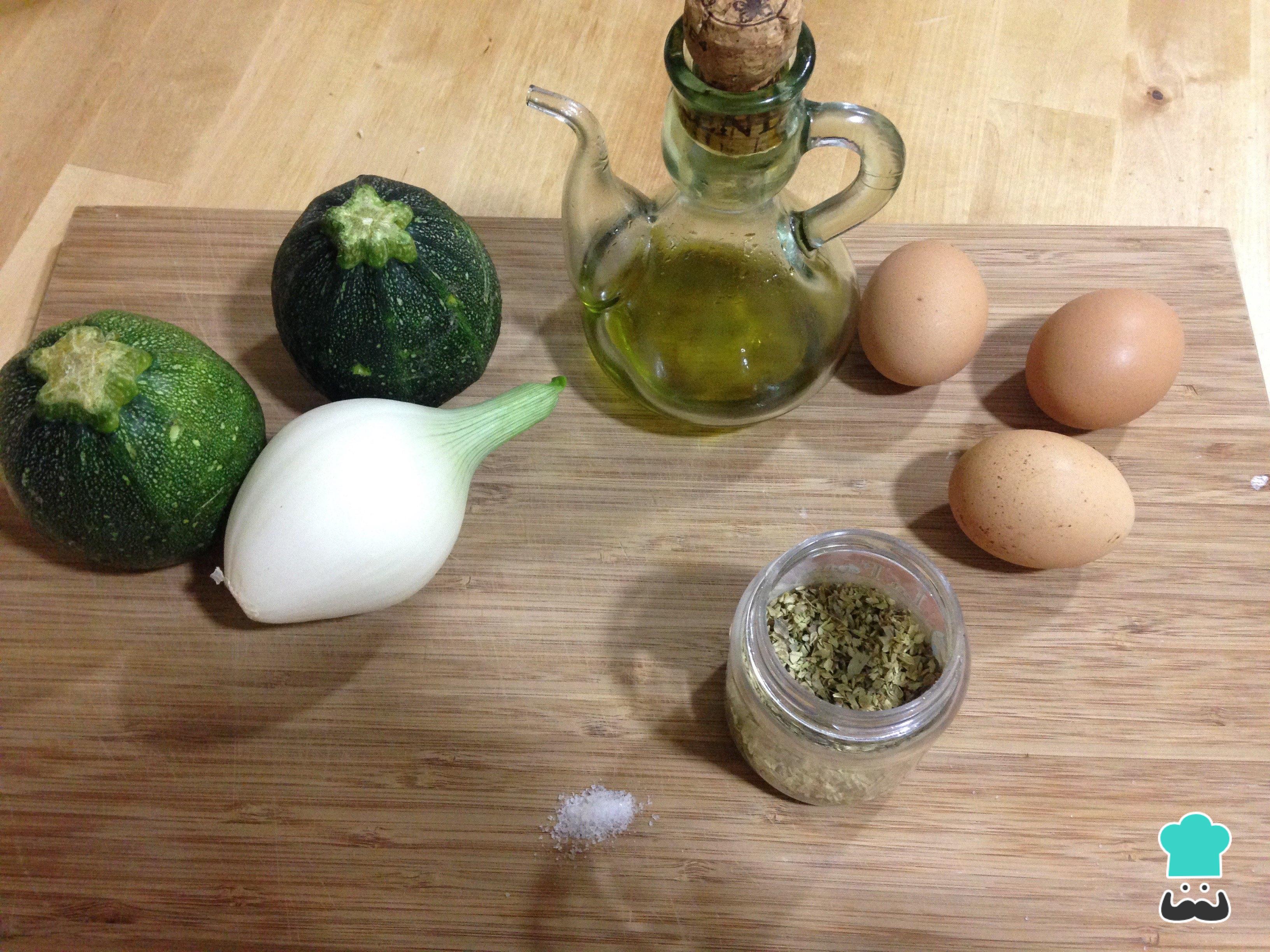Reunimos todos los ingredientes para elaborar los huevos revueltos con calabacín.