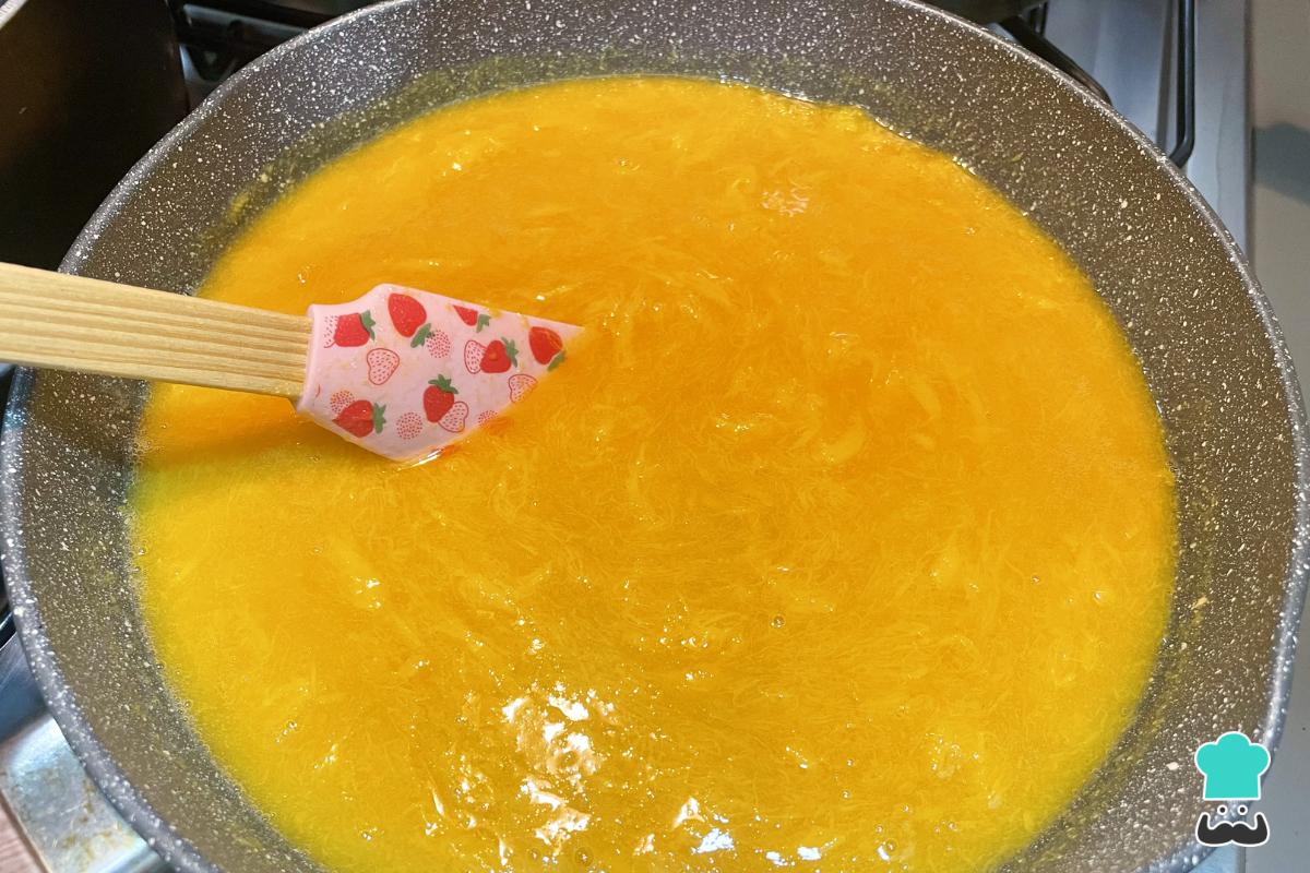 Cocina a fuego bajo sin dejar de revolver, preferiblemente con una espátula de madera. Poco a poco, la mezcla cambiará de color y comenzará a espesar.