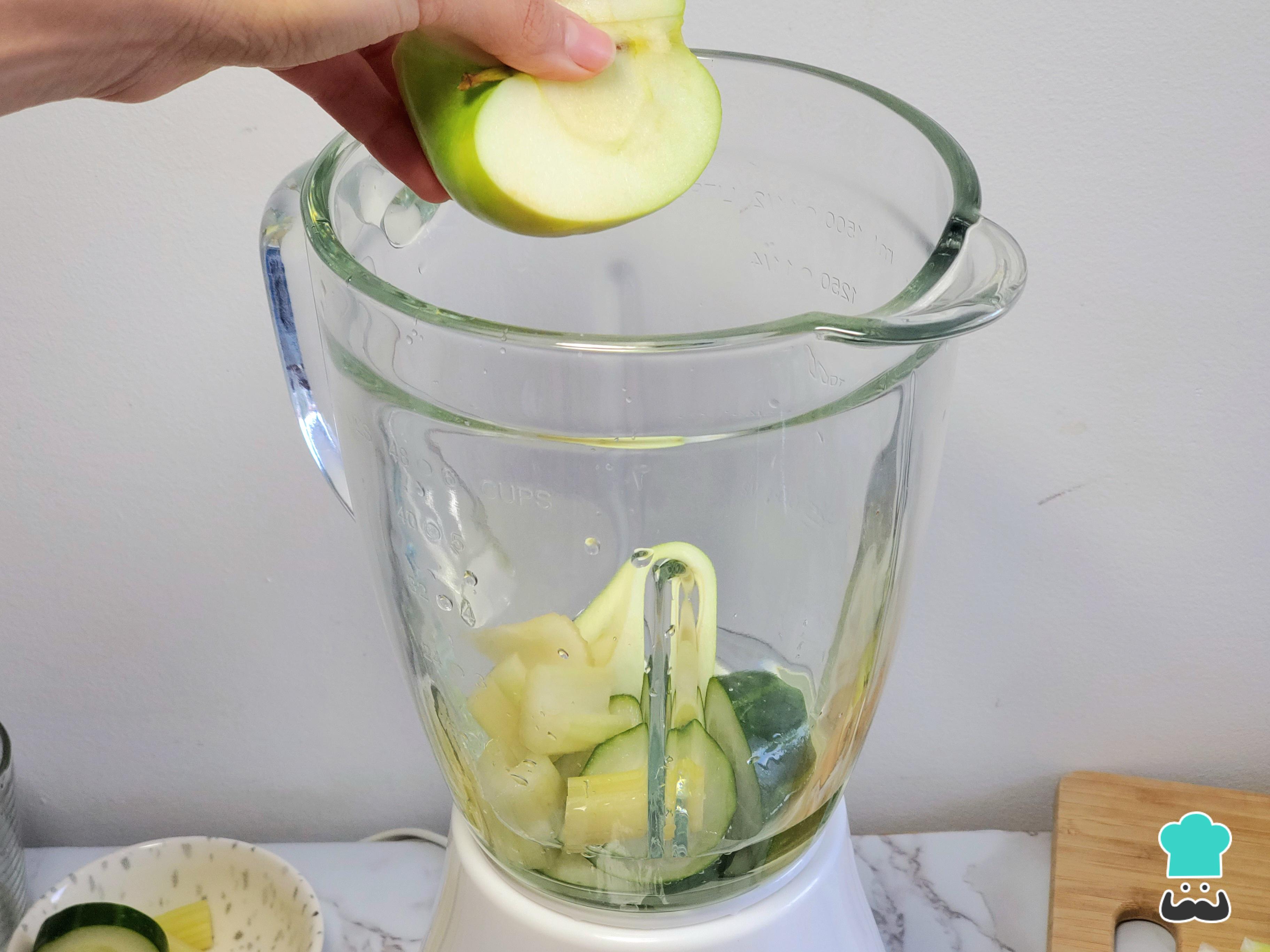 Licúa la mezcla durante un par de minutos asegurándote de que la cáscara del pepino quede completamente integrada.