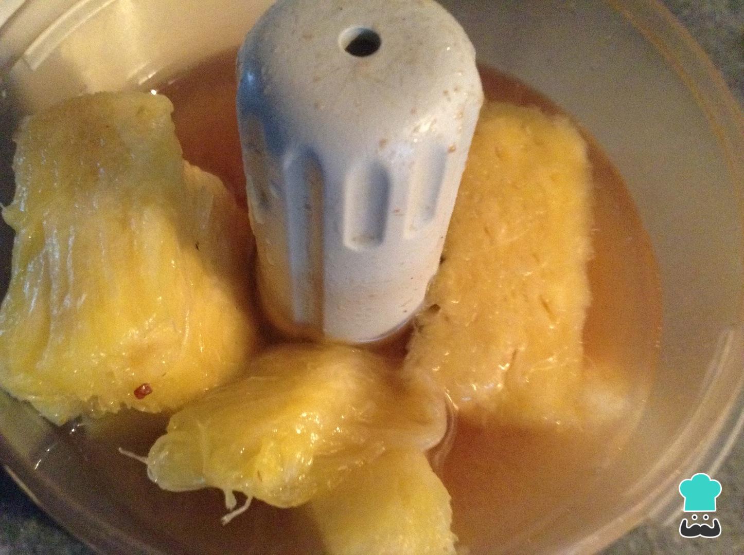 En la licuadora añade la piña, el azúcar y la pulpa de tamarindo disuelta en el agua. Licua durante algunos minutos hasta que se integren los ingredientes.