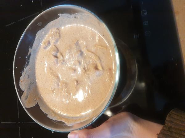 Corta el pollo en trozos de un bocado y salpimienta al gusto. Luego, coloca la carne en un envase con la salsa de yogur y especias y deja el pollo marinando en la nevera durante mínimo 2 horas, y máximo 24. Este proceso es parecido al del salmón horneado con especias, con lo que también podrías hacer unas deliciosas brochetas de pescado.