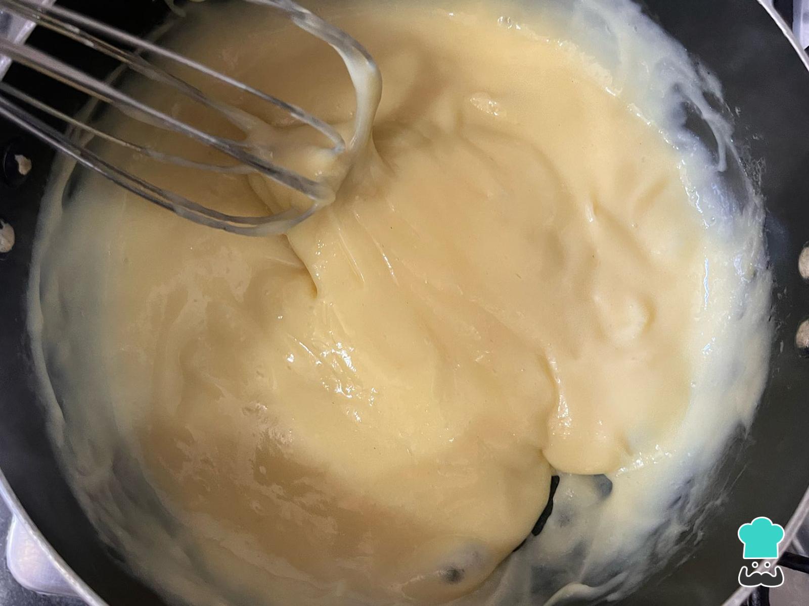 Truco: revuelve frecuentemente para evitar que se pegue la crema. Además, sino vas a usar la crema pastelera de inmediato, cúbrela con papel film para evitar que se le forme una costra.