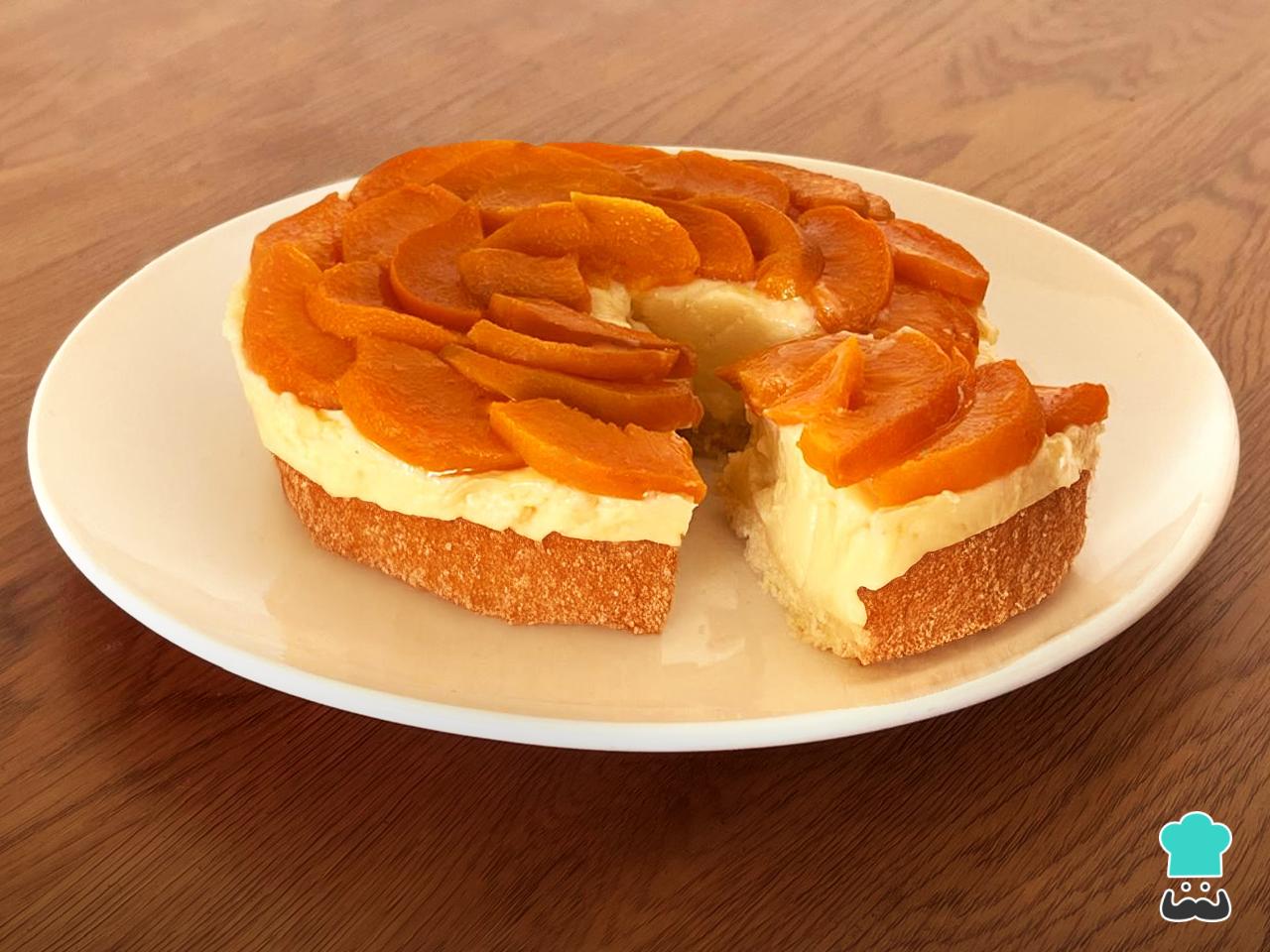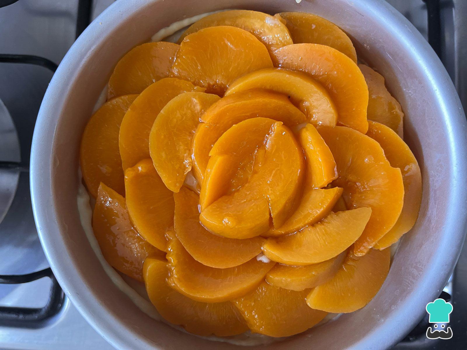 Deja que enfríe la crema y, luego, decora con los gajos de durazno sobre la superficie del kuchen.