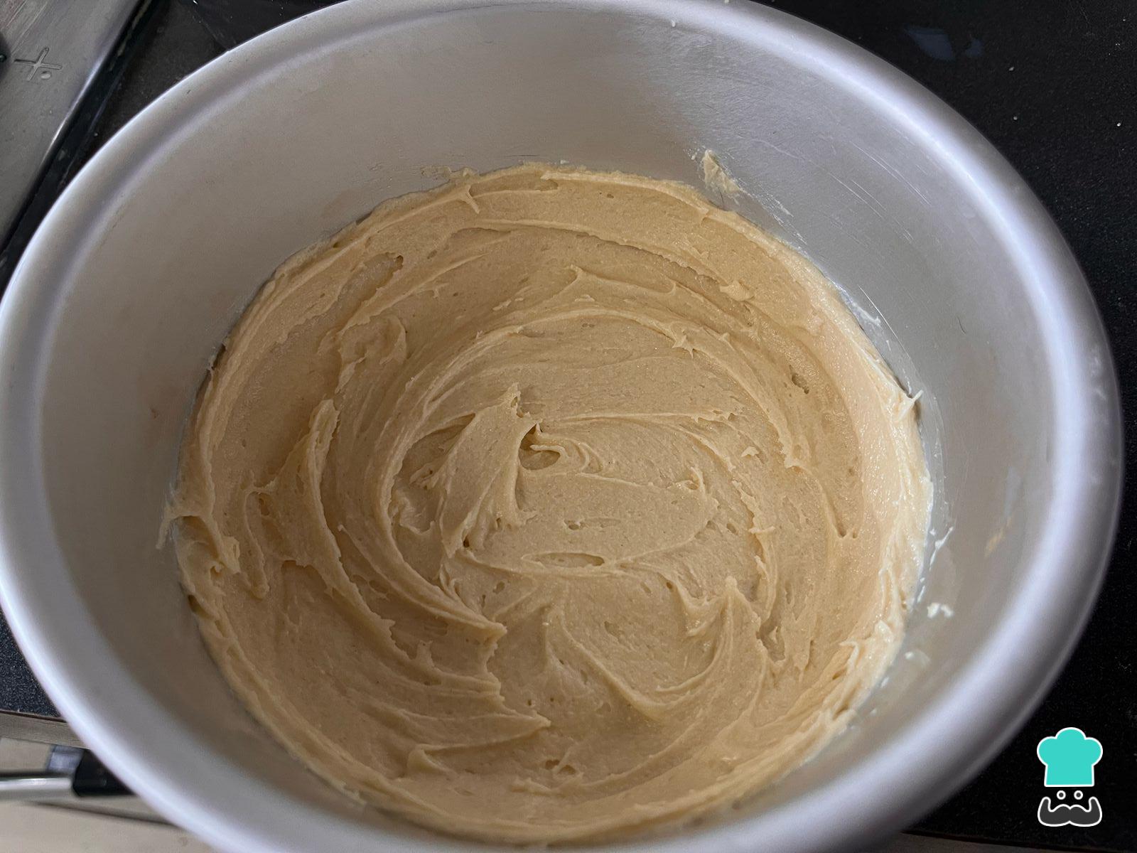 En un molde previamente engrasado agrega la mezcla anterior, distribuye bien y sube la mezcla un poco por los bordes.