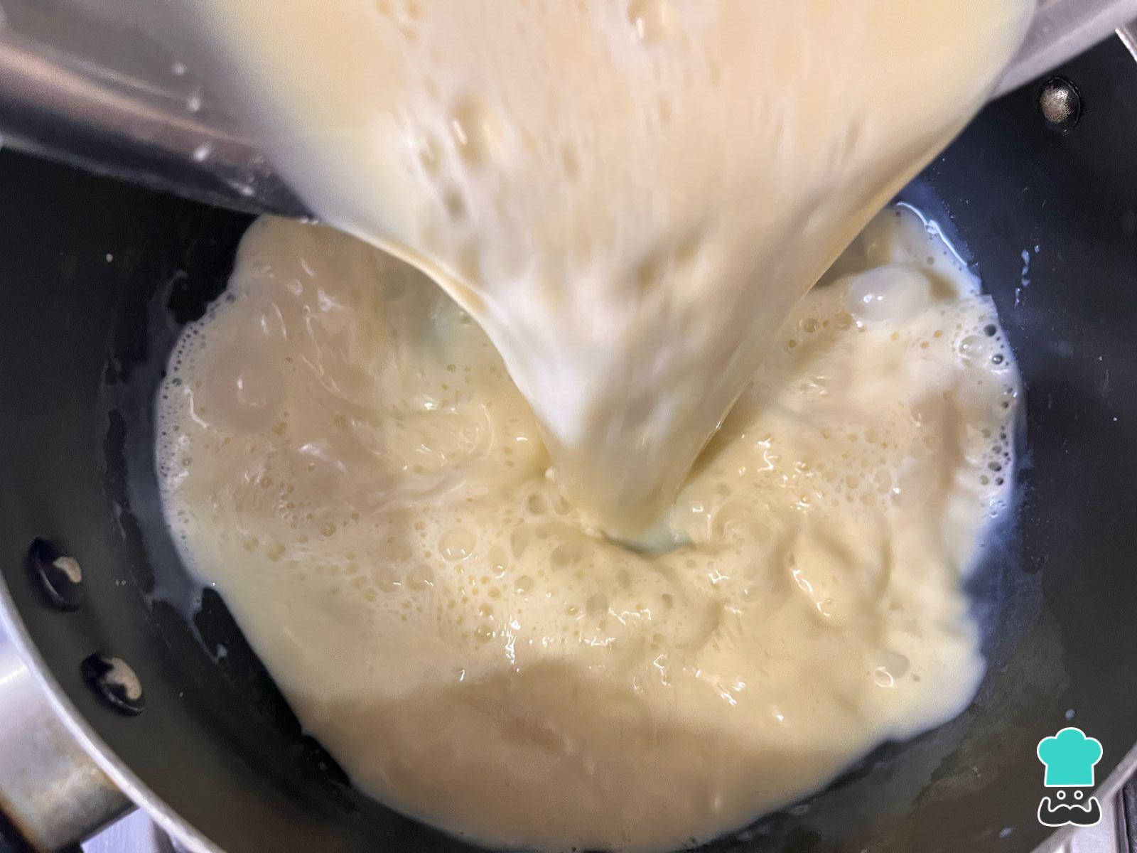 Vuelve a verter la mezcla de leche con yemas en la olla.