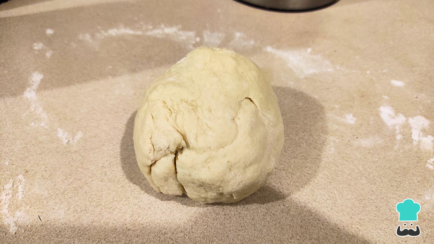 Pasa a una superficie enharinada y amasa hasta formar una masa húmeda, pero no pegajosa. De ser necesario añade más harina.