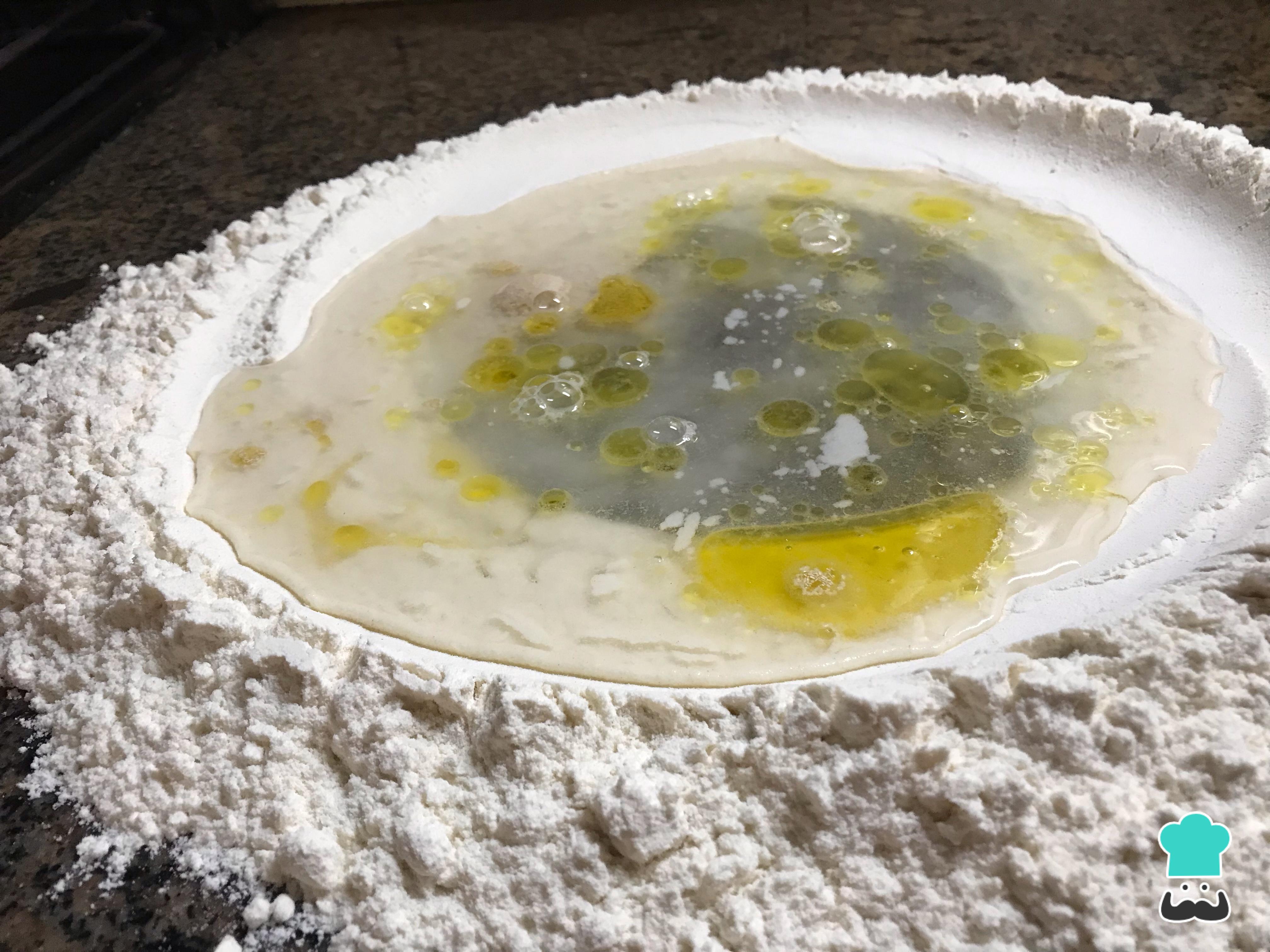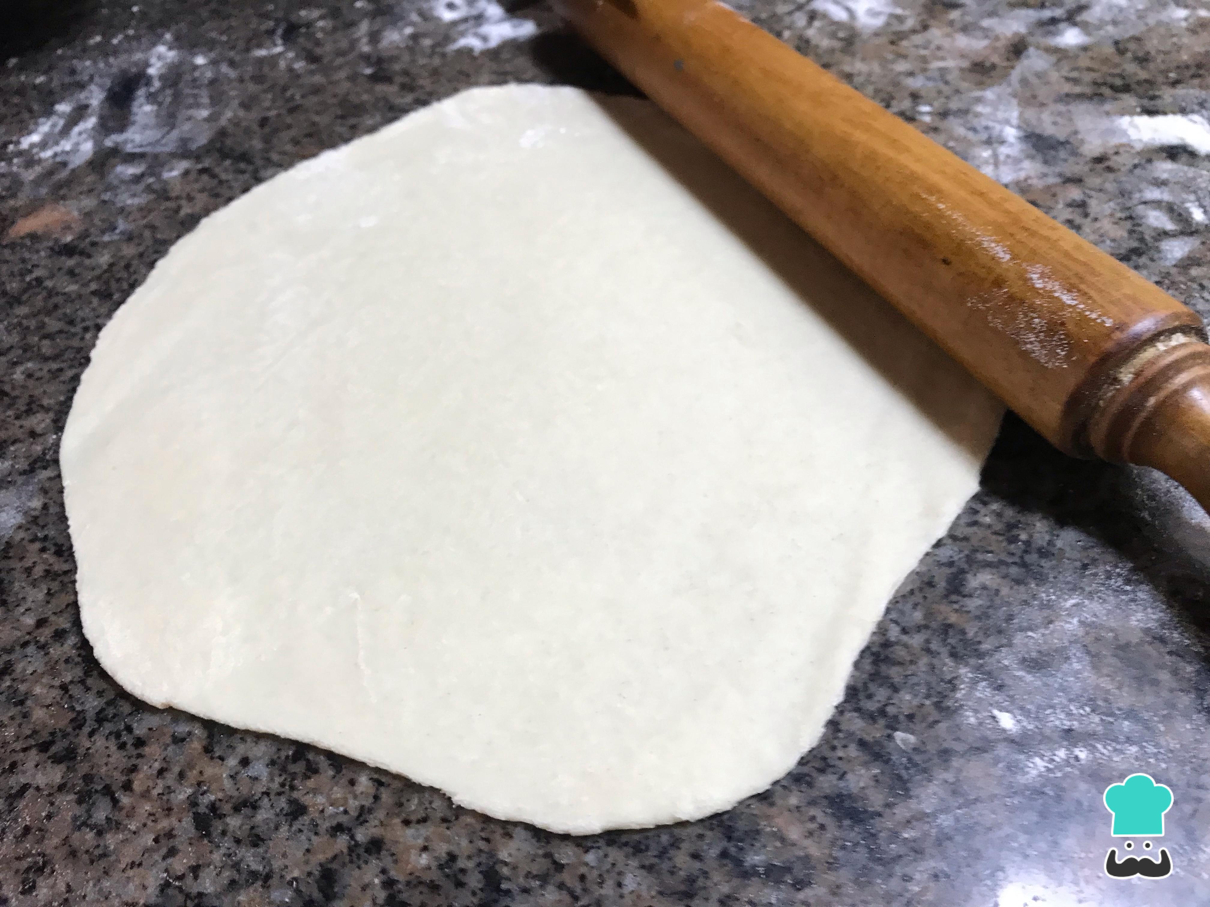 Cuando tu masa haya leudado, córtala en 8 partes iguales y estíralas aproximadamente medio centímetro de ancho.