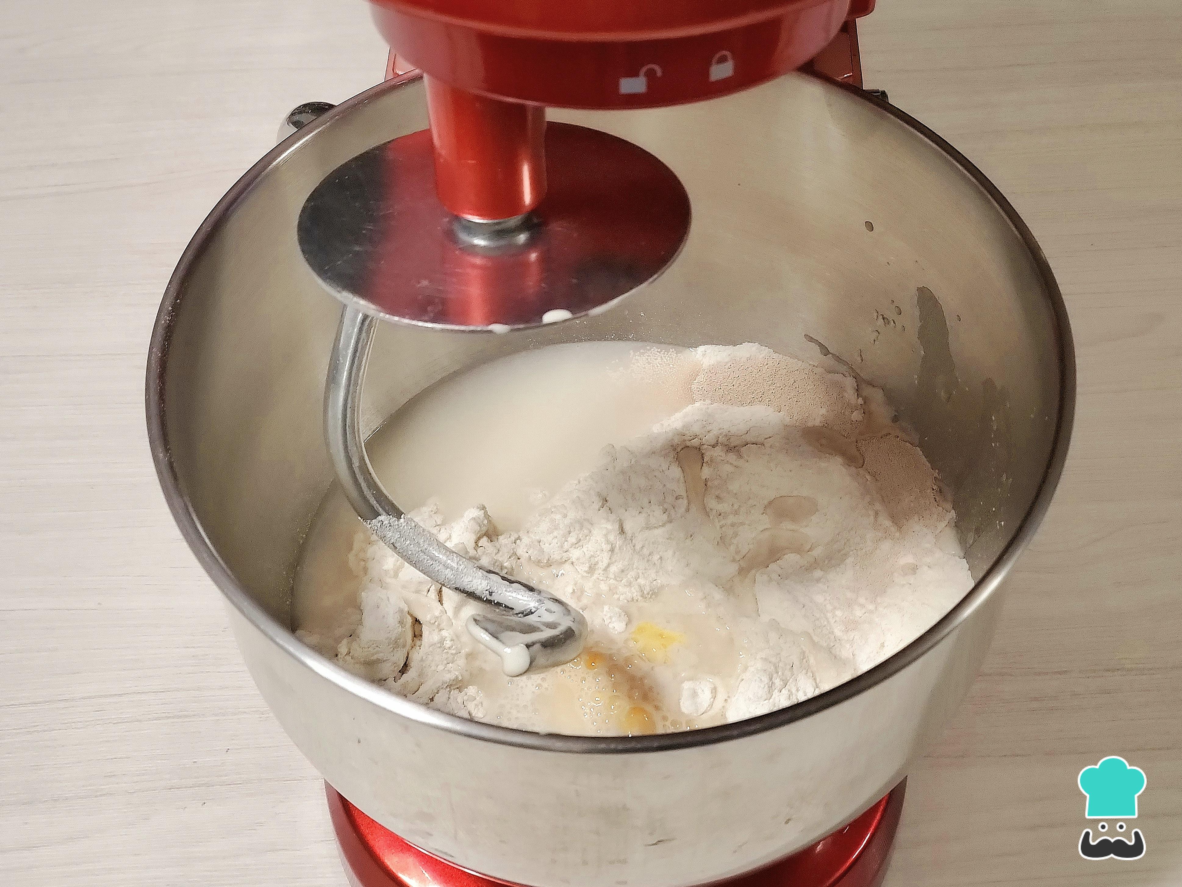 Empieza colocando en un bowl pequeño la leche tibia, el azúcar y la levadura. Mezcla bien y deja reposar durante 10 minutos aproximadamente en el área más cálida de tu hogar, o hasta que duplique su volumen.