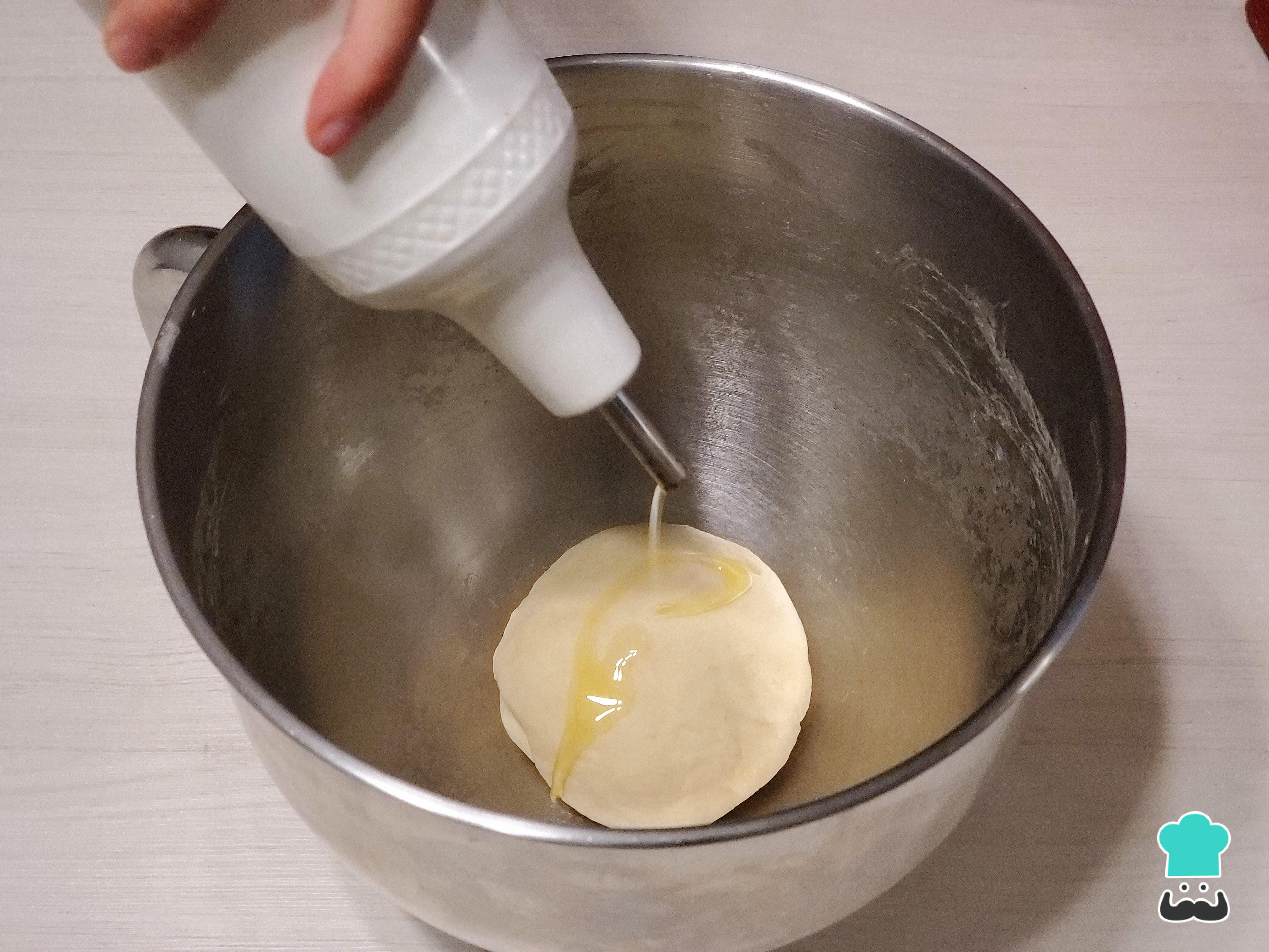 Bolea la masa, colócala en un bowl engrasado y cúbrela con un paño húmedo o con papel film. Deja que la masa repose durante 1 hora nuevamente en el área más caliente de tu hogar.