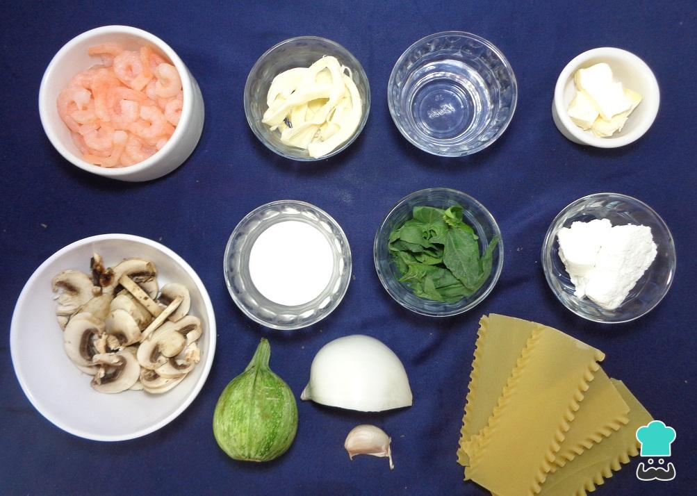 Comenzaremos a preparar la lasaña de camarones y verduras reuniendo todos los ingredientes que vayamos a utilizar.