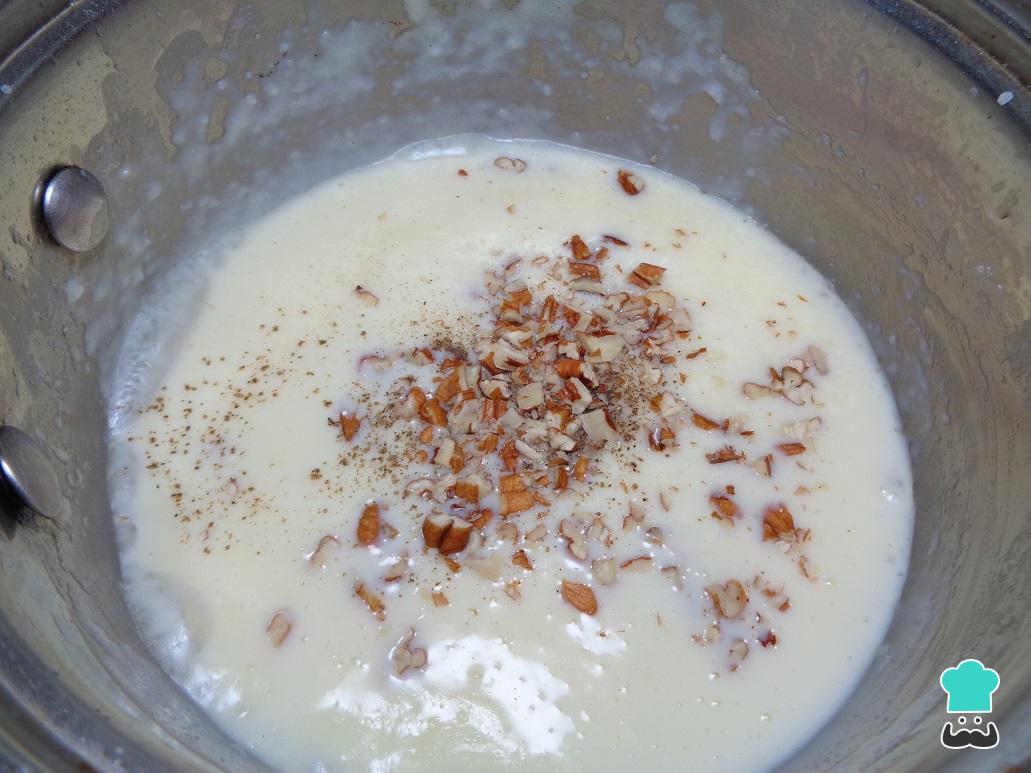 Una vez que la mantequilla y la fécula de maíz estén bien integradas, añadimos la leche y sazonamos con una pizca de sal, pimienta y la nuez moscada. Integramos nuevamente, y cuando esté todo listo y sin grumos, retiramos del fuego y reservamos un momento. Para más detalles, no te pierdas nuestra receta de salsa bechamel paso a paso.