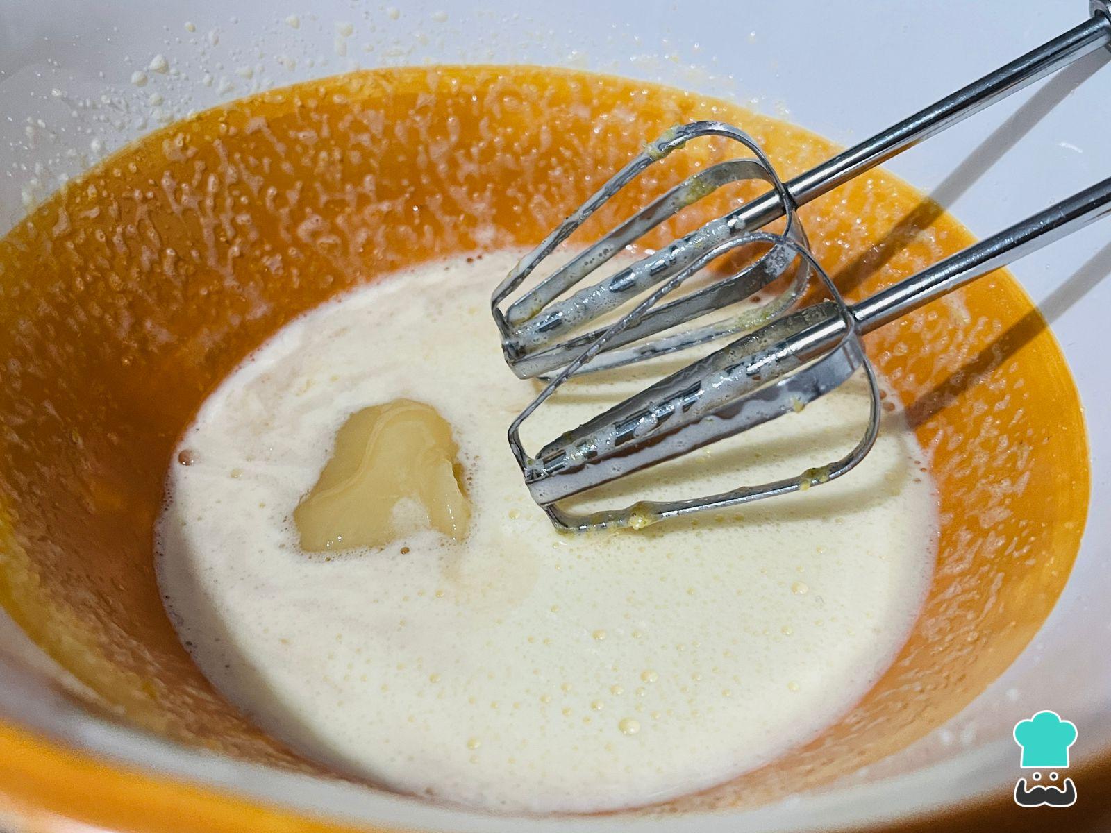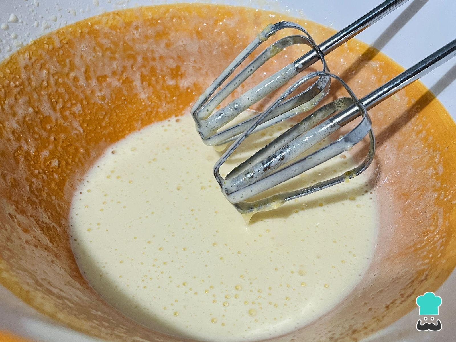 Bate el huevo a temperatura ambiente por unos 2 minutos con la pizca de sal mientras agregas el azúcar en forma de lluvia.