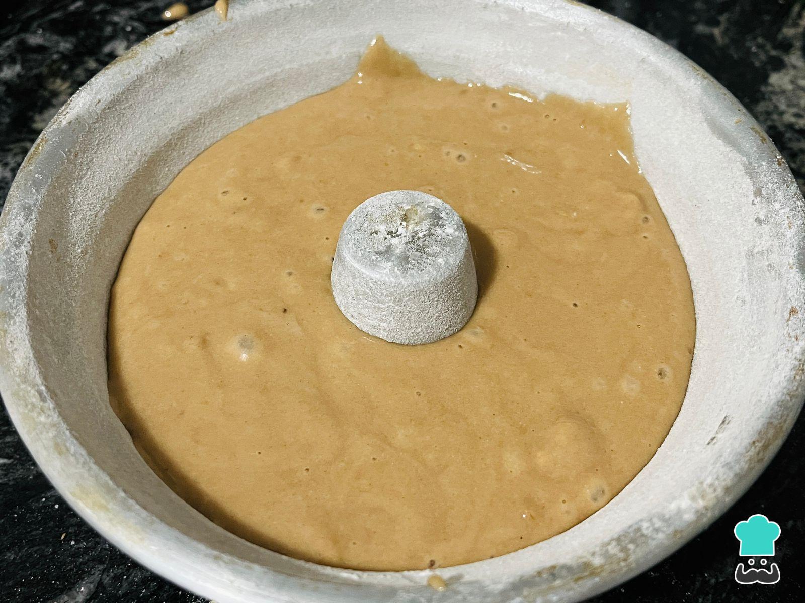 Si la consistencia de la preparación de la torta de miel judía queda muy líquida, agrega progresivamente harina tamizada hasta lograr una consistencia cremosa. Vuélcala en el molde engrasado y enharinado, en este caso, de 16 centímetros de diámetro.