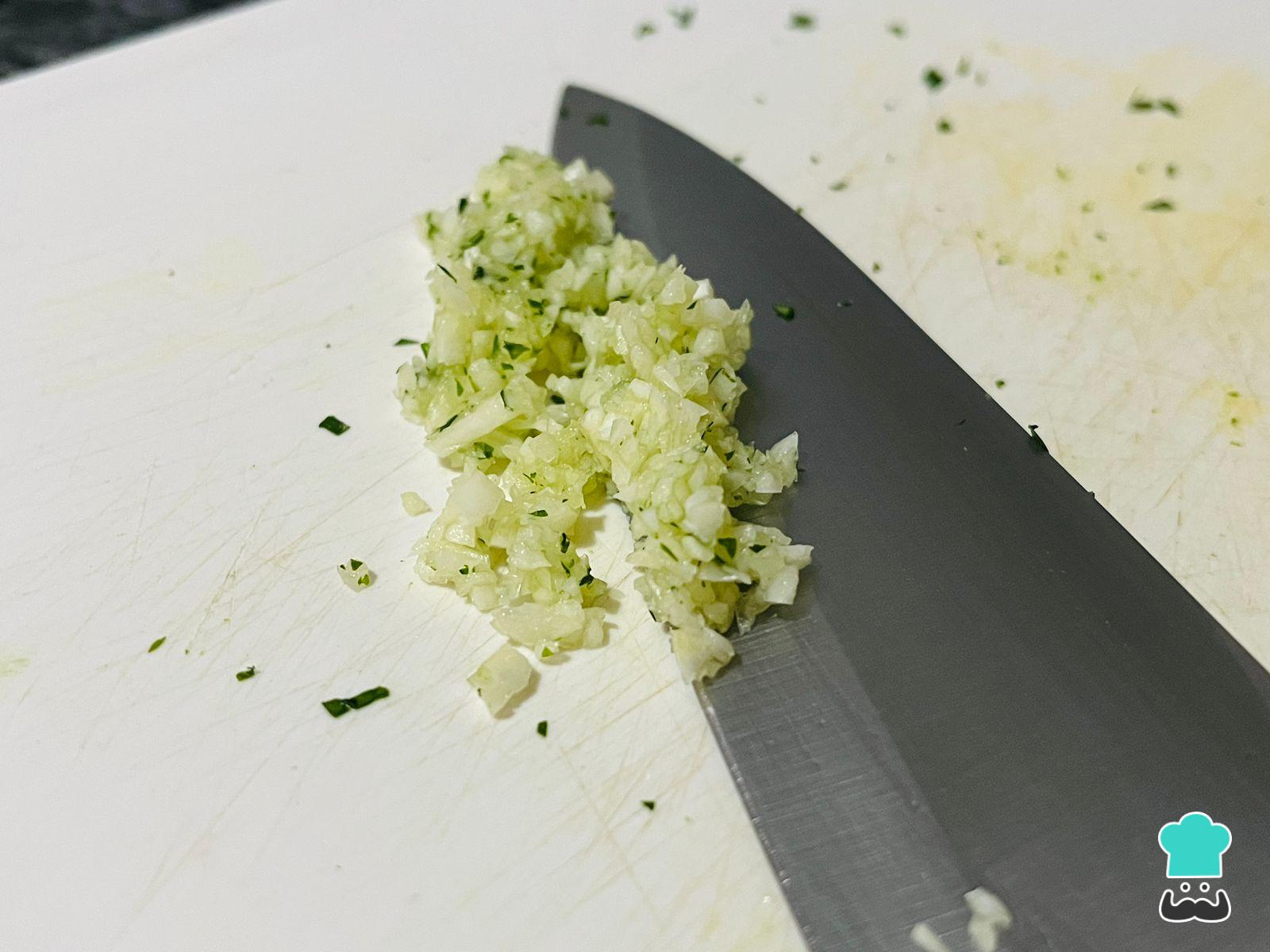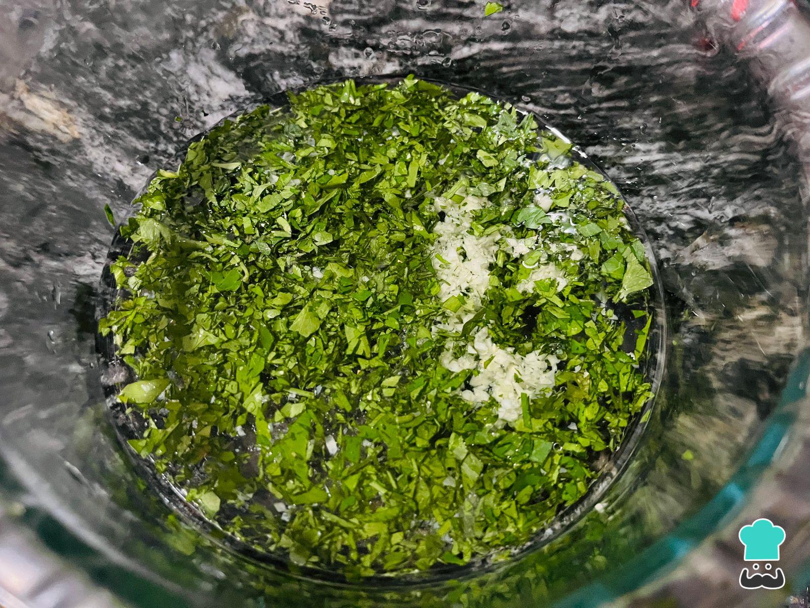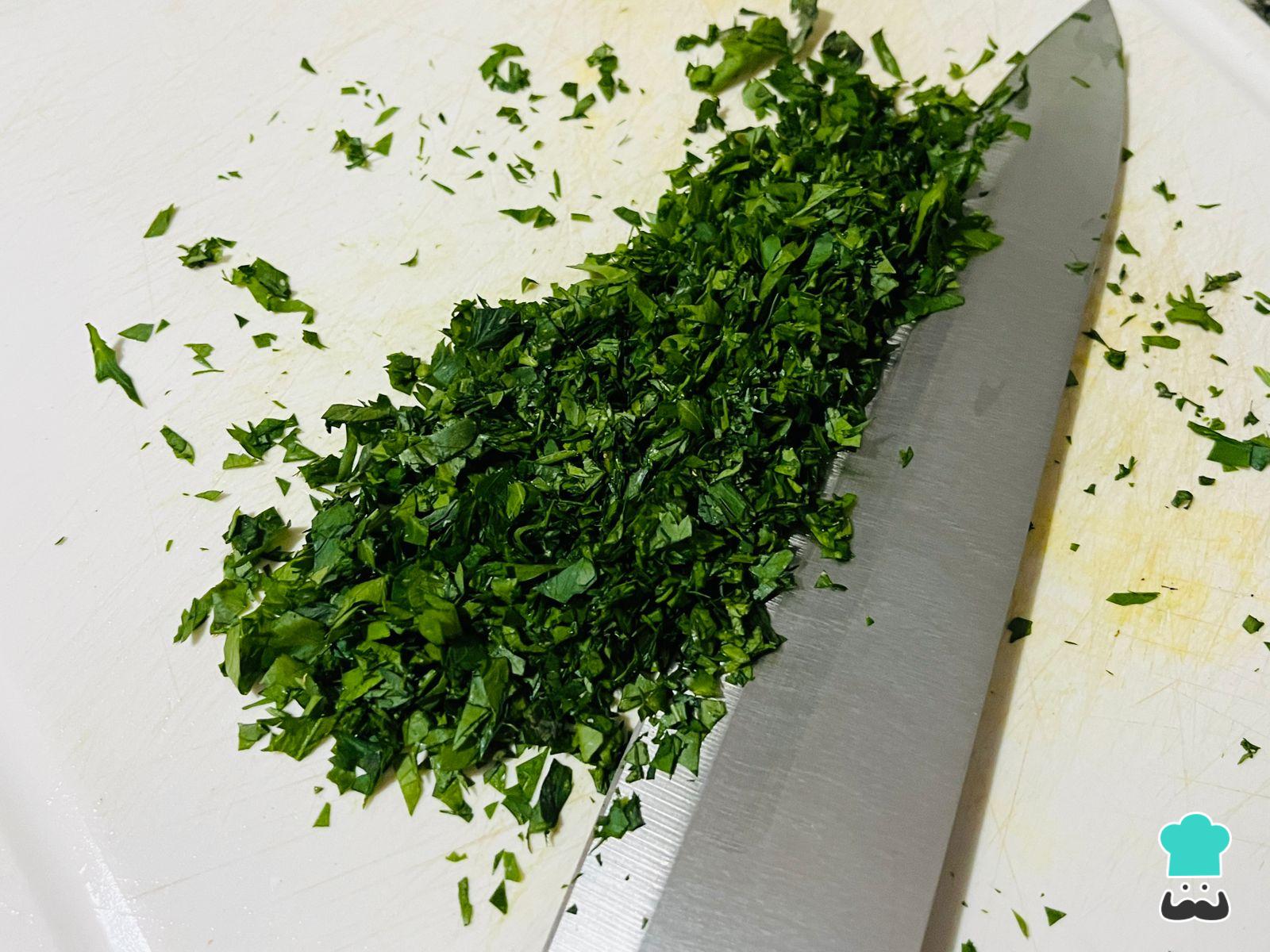 Mientras, prepara la vinagreta para lengua picando finamente el perejil.