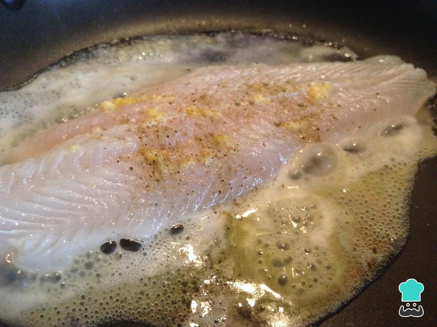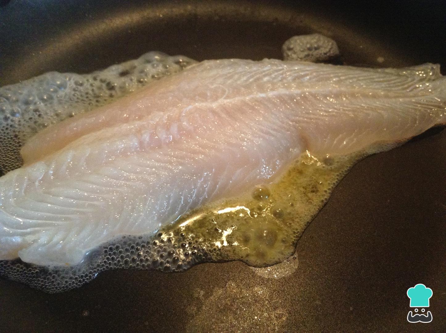 Aparte, lleva un sartén a fuego medio y adiciona la mantequilla. Una vez ésta se derrita agrega los filetes de lenguado.