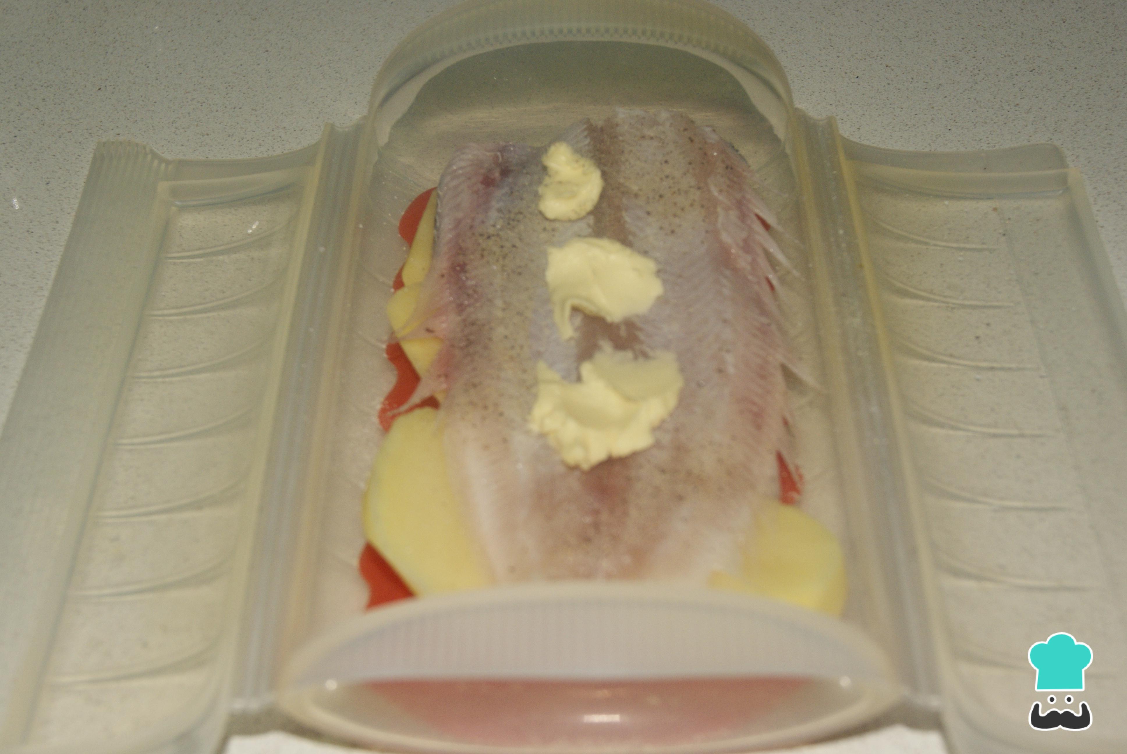 Ponemos por encima el lenguado y la mantequilla en pequeños trozos.