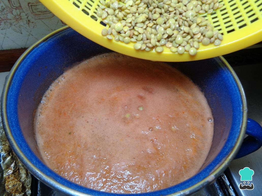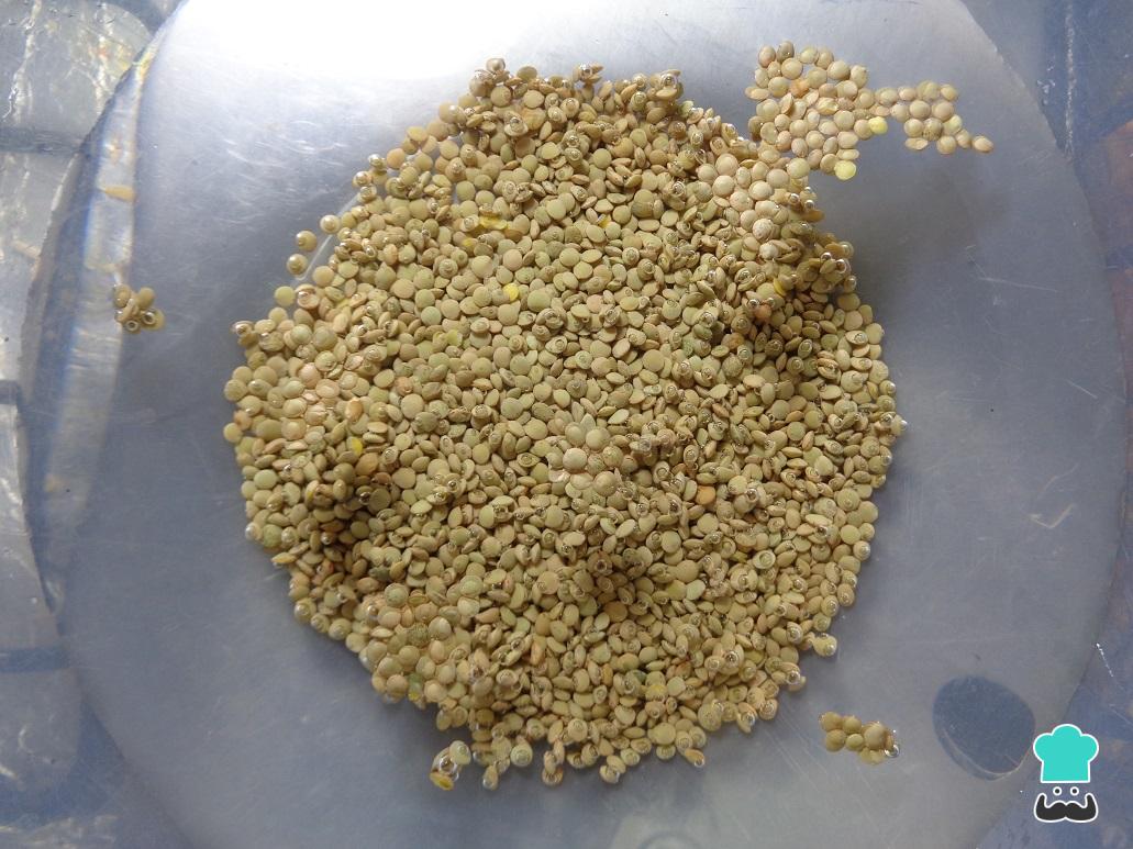 Para iniciar debemos dejar en remojo las lentejas, en un envase con agua, por aproximadamente 2 horas o hasta que se vean hinchadas. Esto hará que se suavicen y su cocción sea más rápida.