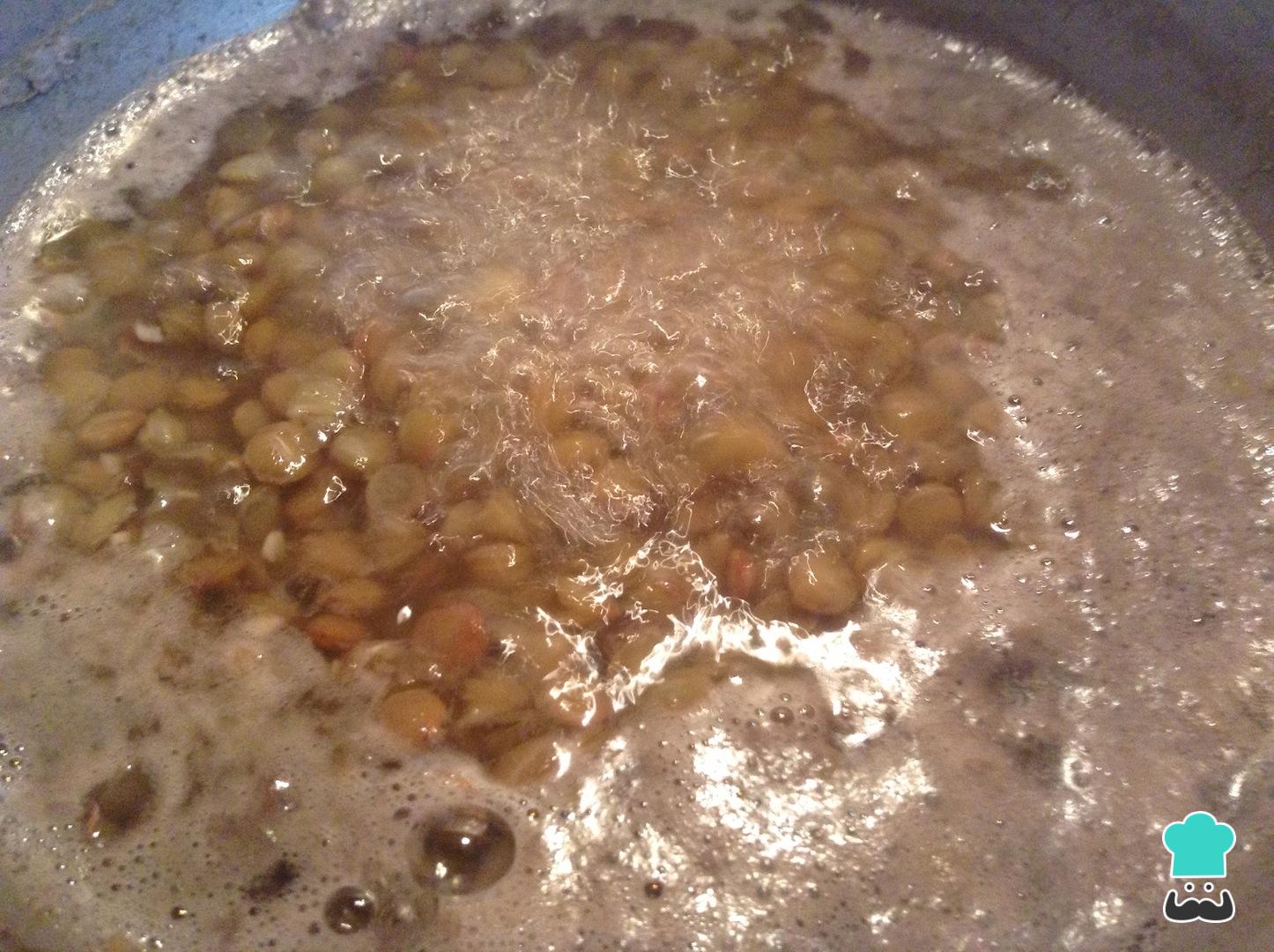 Retira el agua donde estaban remojadas las lentejas y añádelas a una olla con 3 tazas de agua, o hasta que observes que el agua las cubre por completo. Déjalas cocinar durante 15 minutos aproximadamente.
