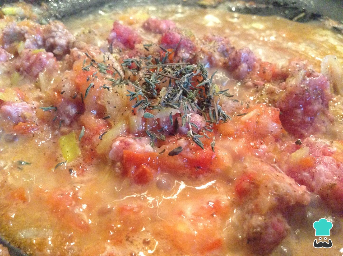 Agrega un poco de tomillo al gusto, pasta de ajo y comino a la carne para darle un toque de sabor adicional.