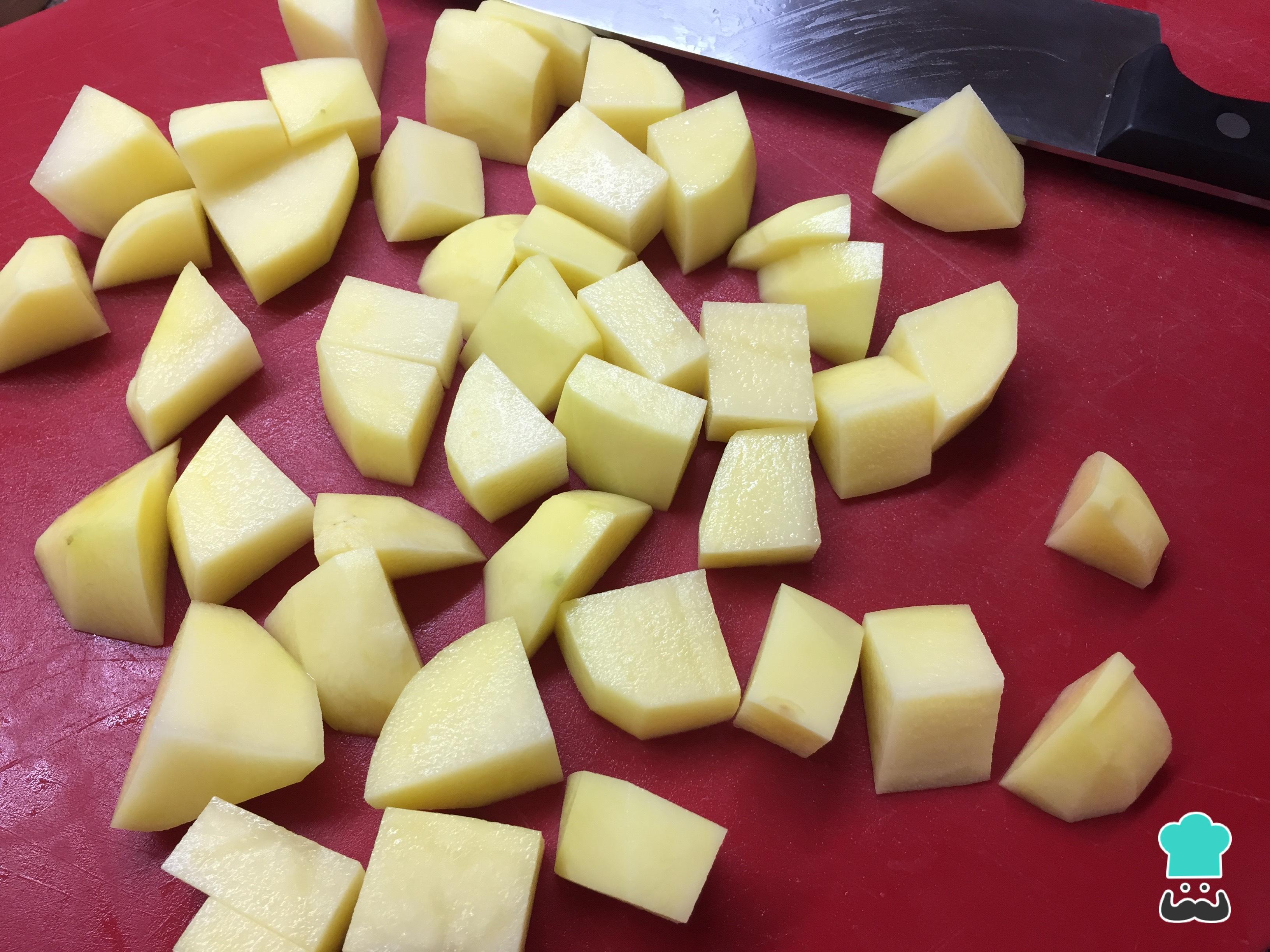 Para poder empezar a preparar la receta de lentejas con patatas y jamón, lo primero que debemos hacer es dejar listos los ingredientes. Para ello, pelamos las patatas, las lavamos y troceamos del mismo tamaño. Aunque nosotros nos hemos decantado por utilizar solo tres ingredientes principales, si lo deseas puedes añadir verduras como zanahoria y cebolla, e incluso pedazos de carne de ternera.