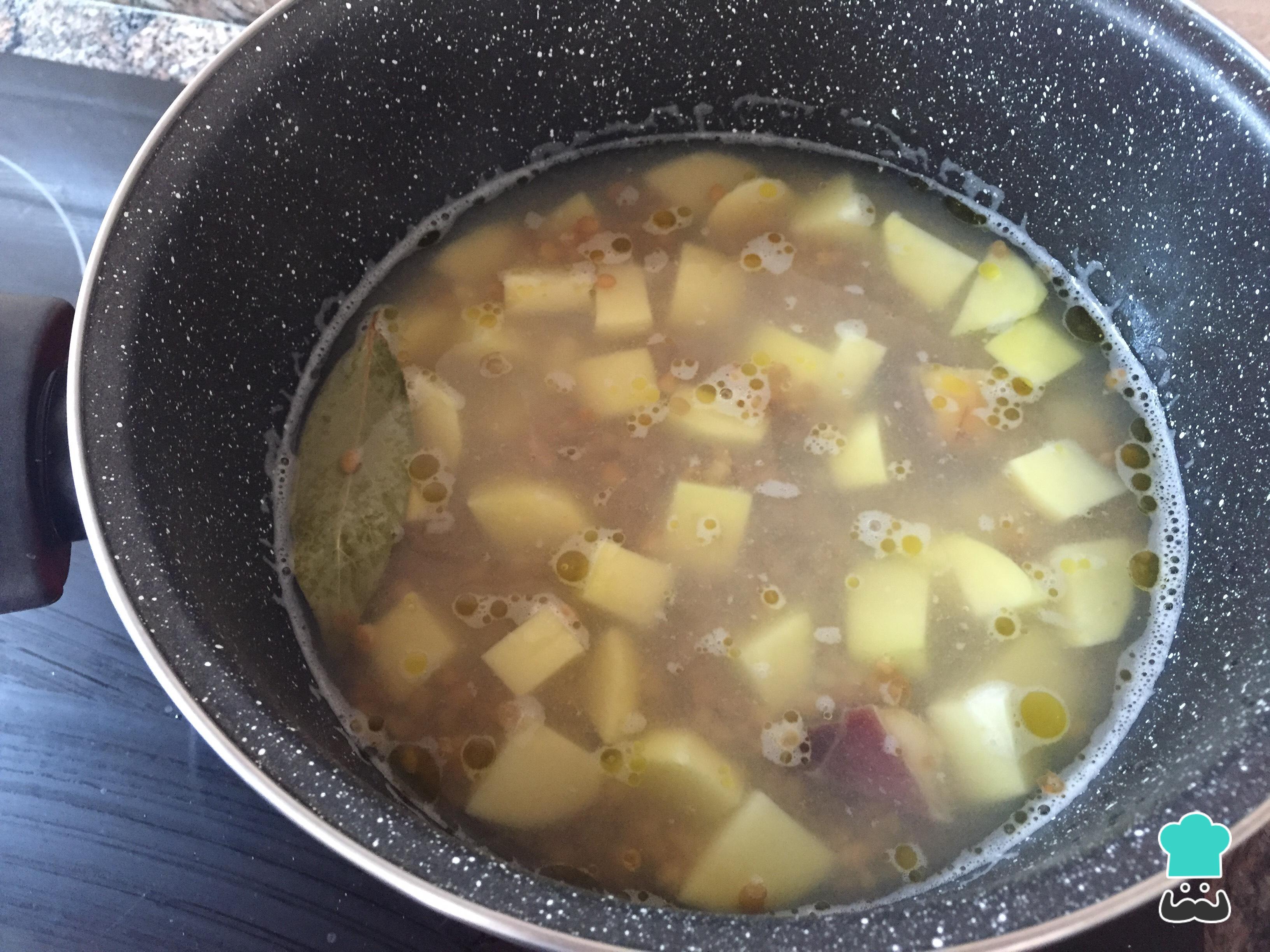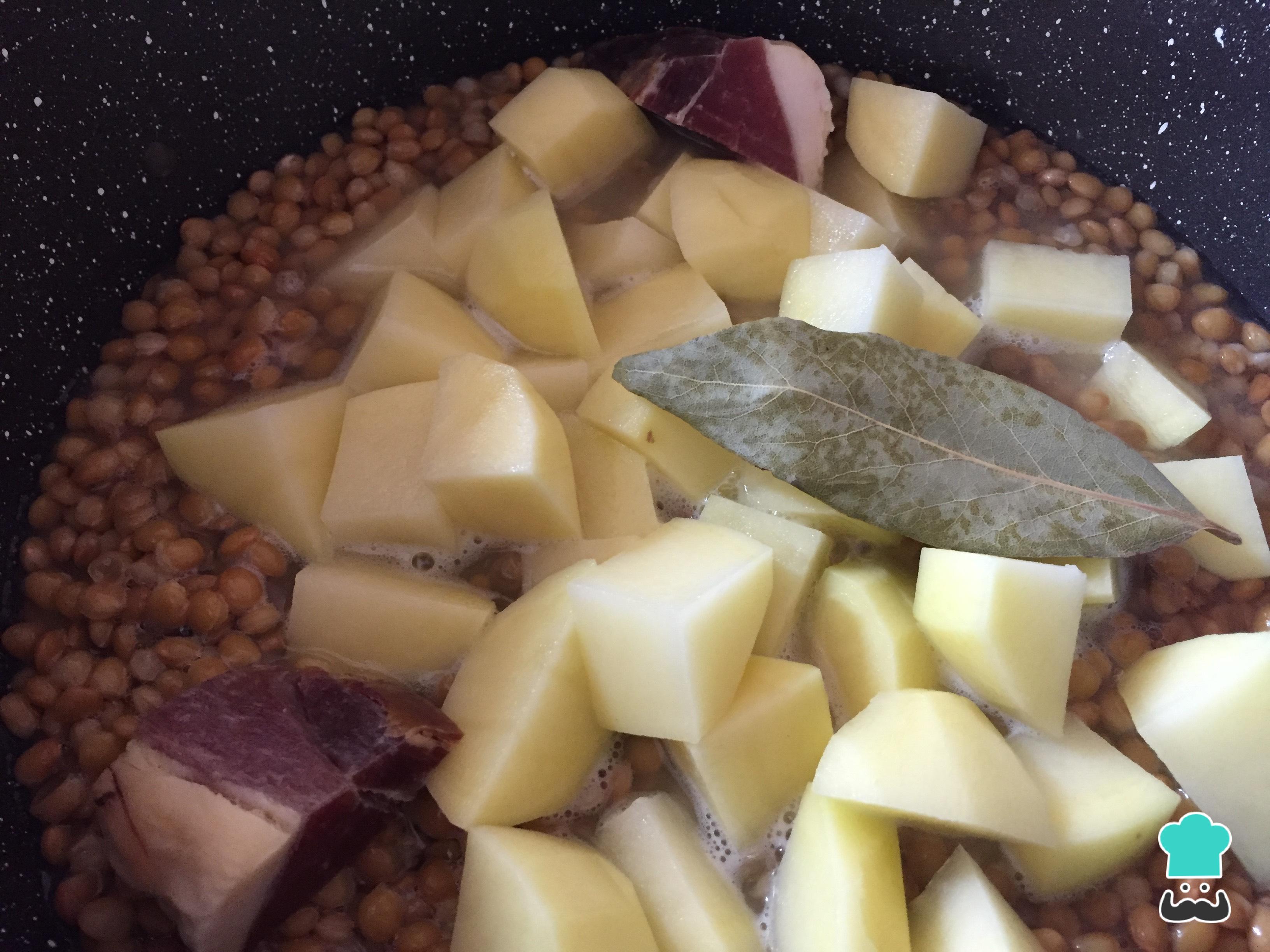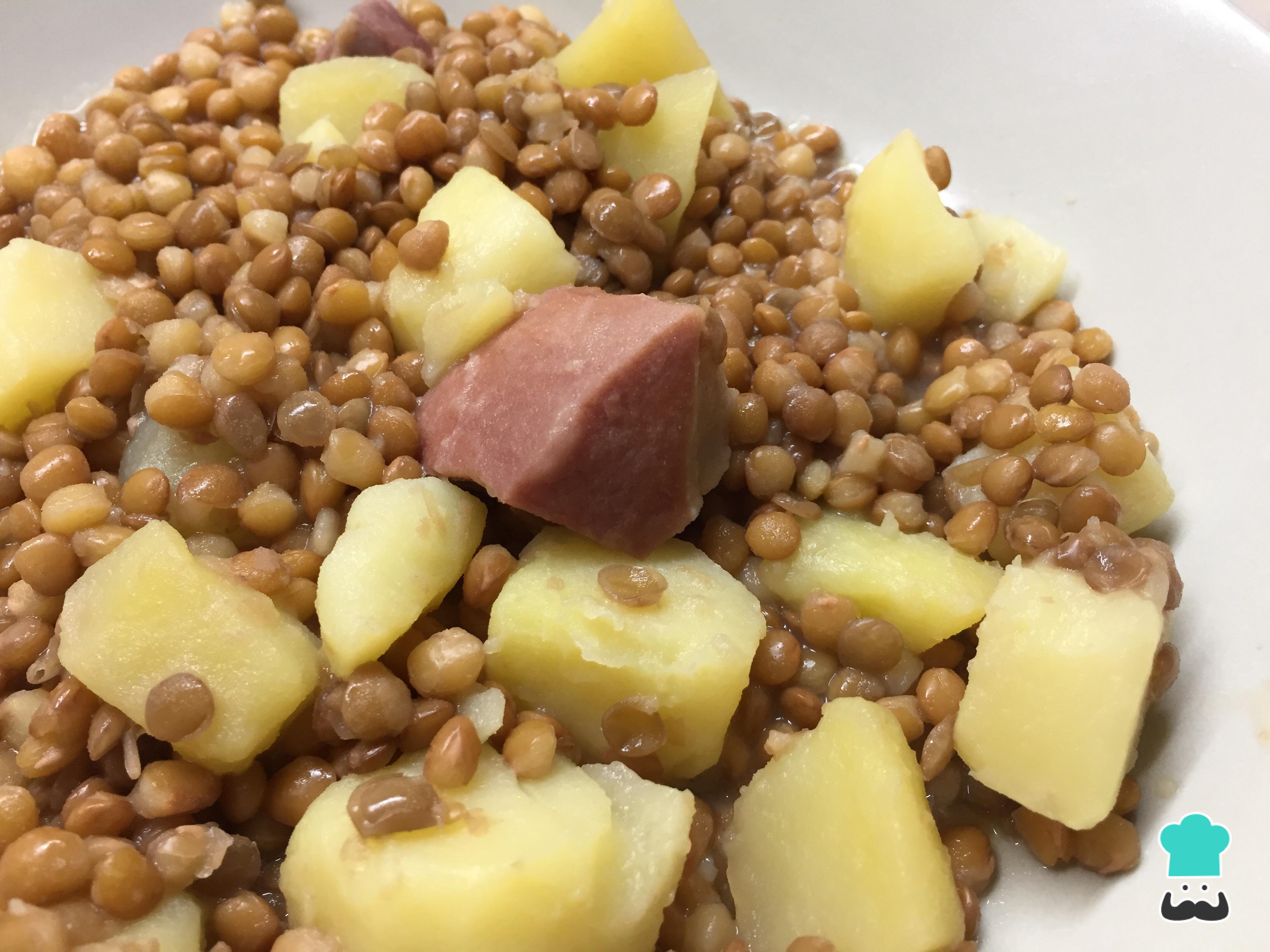 Cómo hacer Lentejas con jamón y patatas: