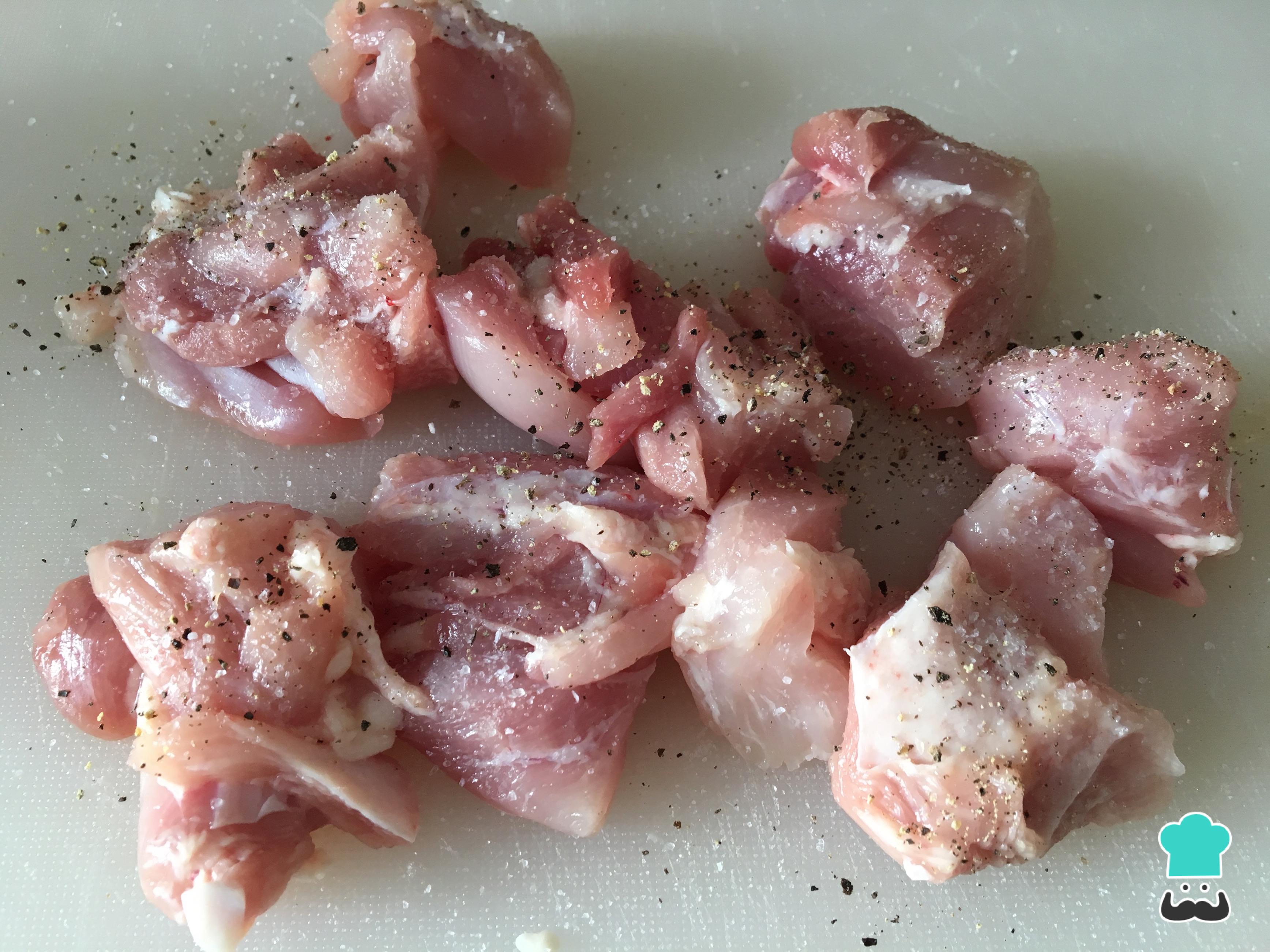 Troceamos el pollo en trozos medianos y lo salpimentamos. Doramos el pollo en una olla con 4 cucharadas de aceite de oliva. Dejamos que se selle la carne y reservamos para continuar con la preparación de las lentejas estofadas.