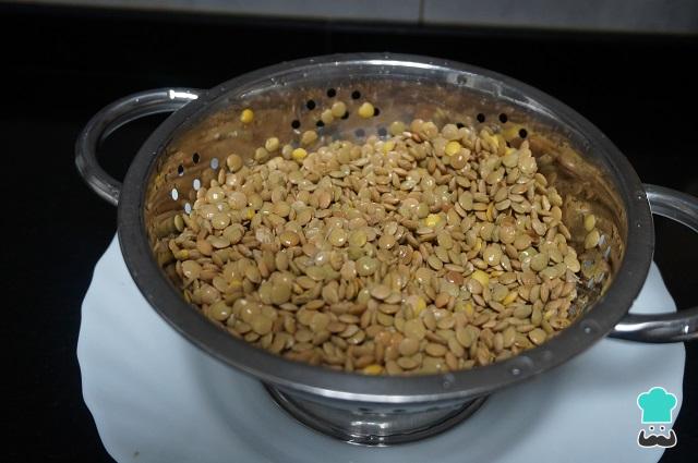 Empezaremos lavando bien las lentejas. Para esta receta de lentejas con chorizo y verduras puedes utilizar esta legumbre de bote o seca. En caso de optar por la segunda opción, puedes dejarlas en remojo durante una hora aproximadamente o no, ya que para este tipo de legumbre este paso es opcional.