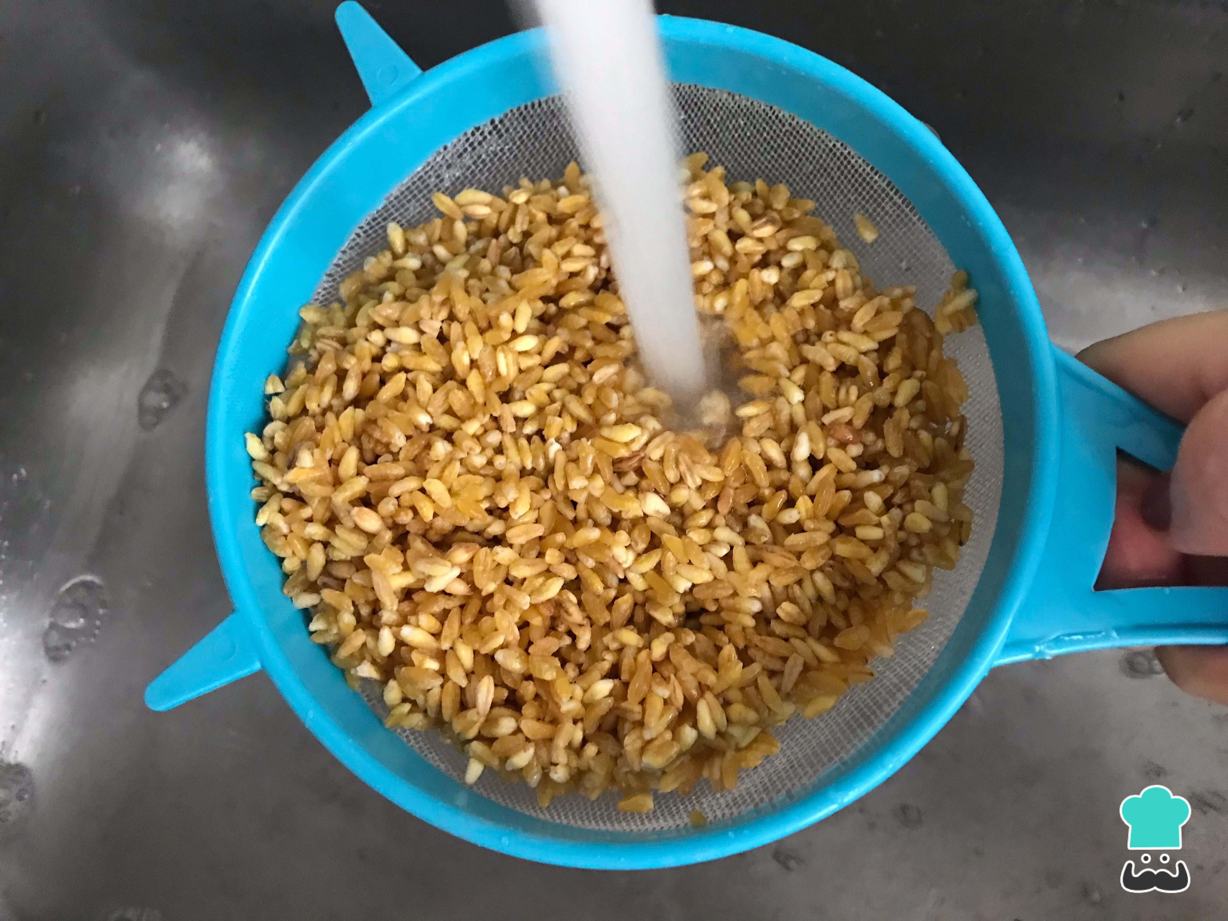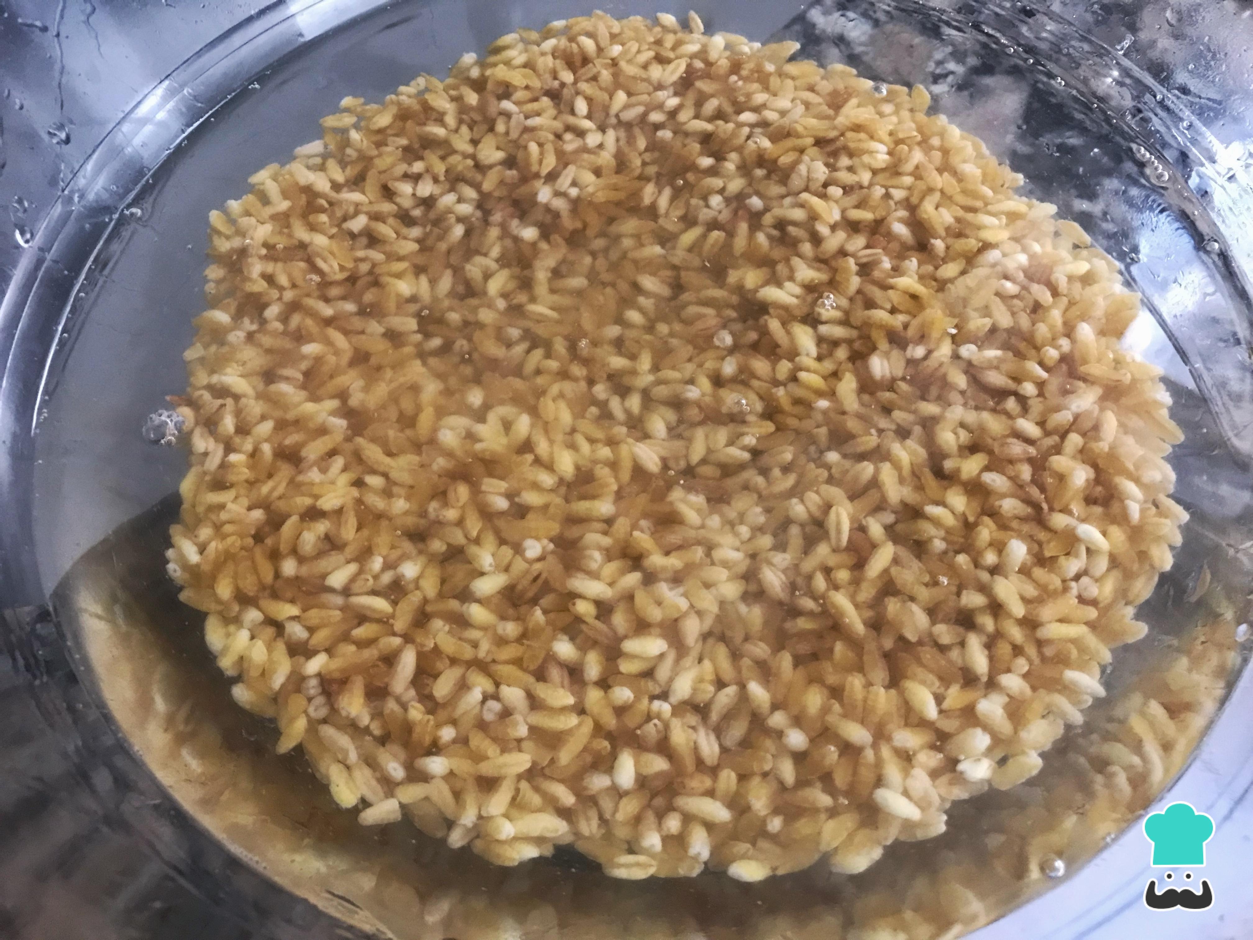 Para empezar a preparar tu locro de trigo, enjuaga el cereal hasta que el agua salga límpida.