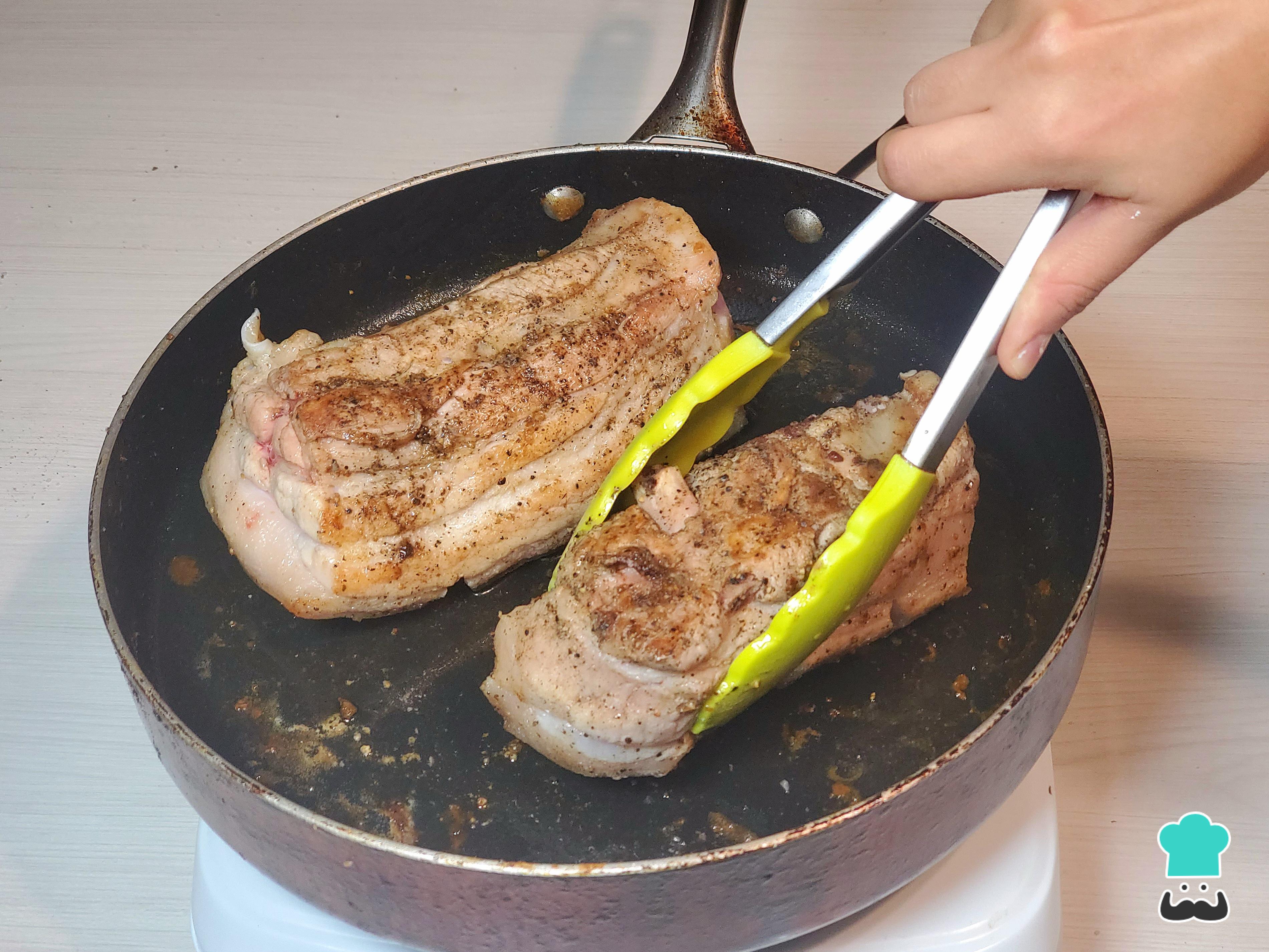 Truco: El lomo de cerdo en salsa tiene que quedar jugoso pero no seco.