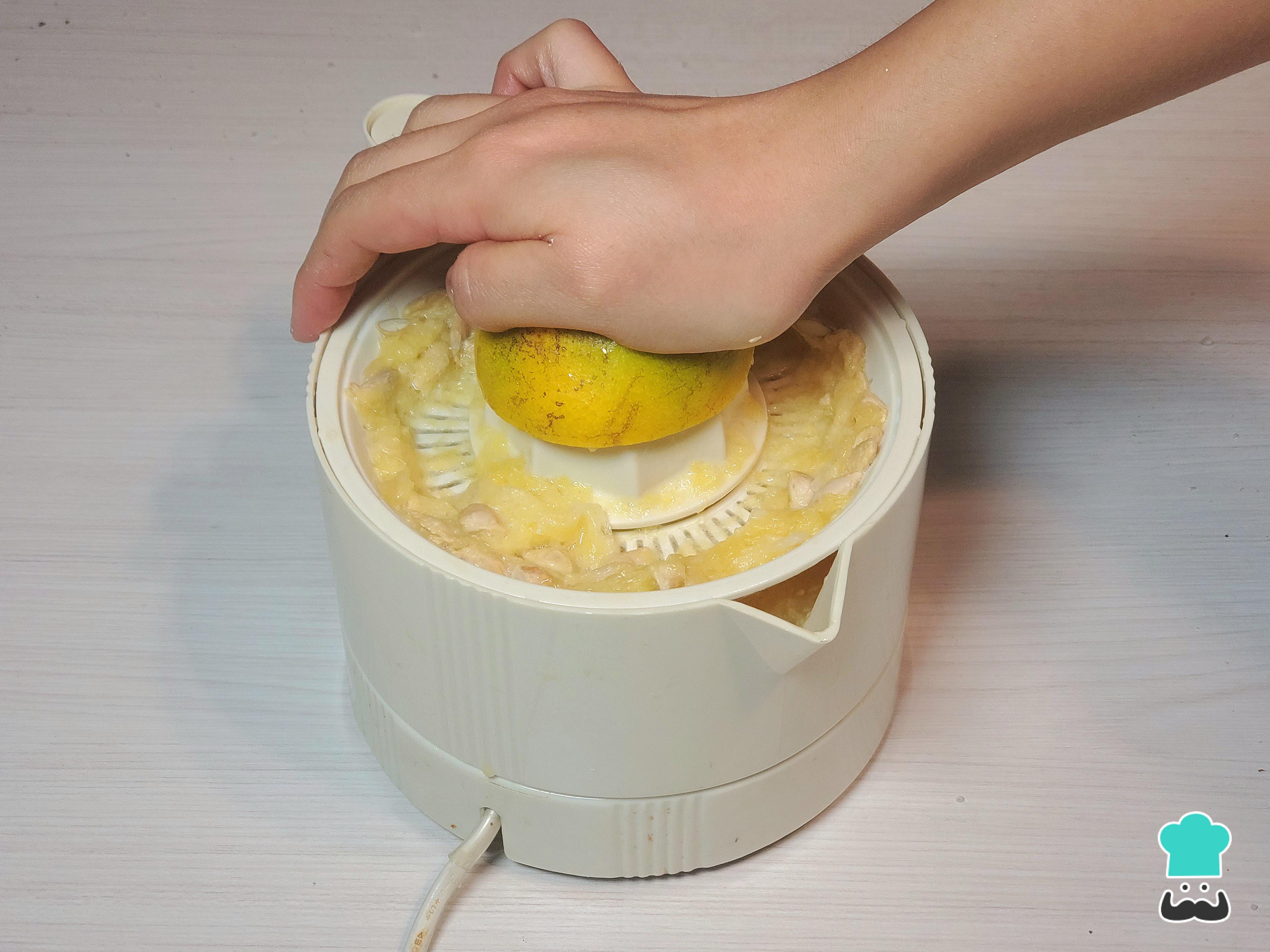 Mientras se enfría la carne, exprime las naranjas frescas hasta obtener aproximadamente 1½ tazas de jugo natural. Cuela para eliminar semillas y pulpa excesiva.