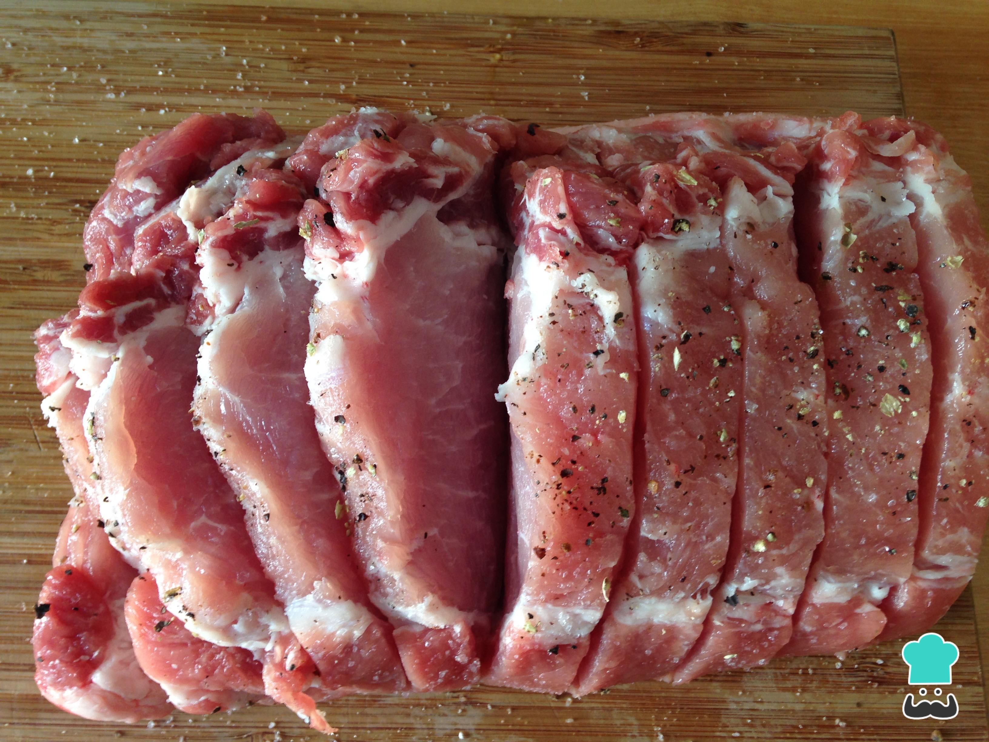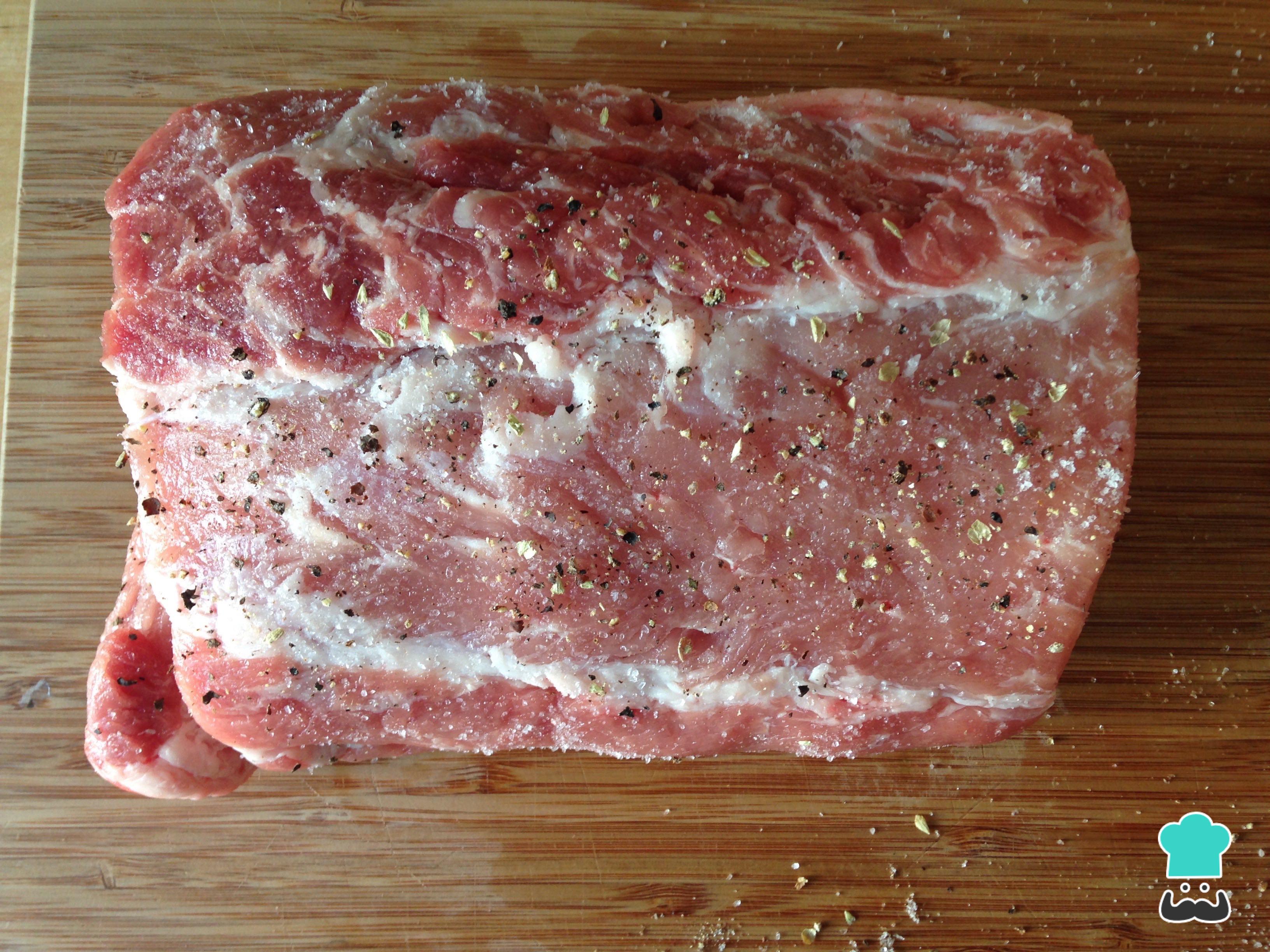 Aderezamos el lomo con sal y pimienta por todas sus partes. Esta receta también se puede elaborar con cabezada de cerdo.