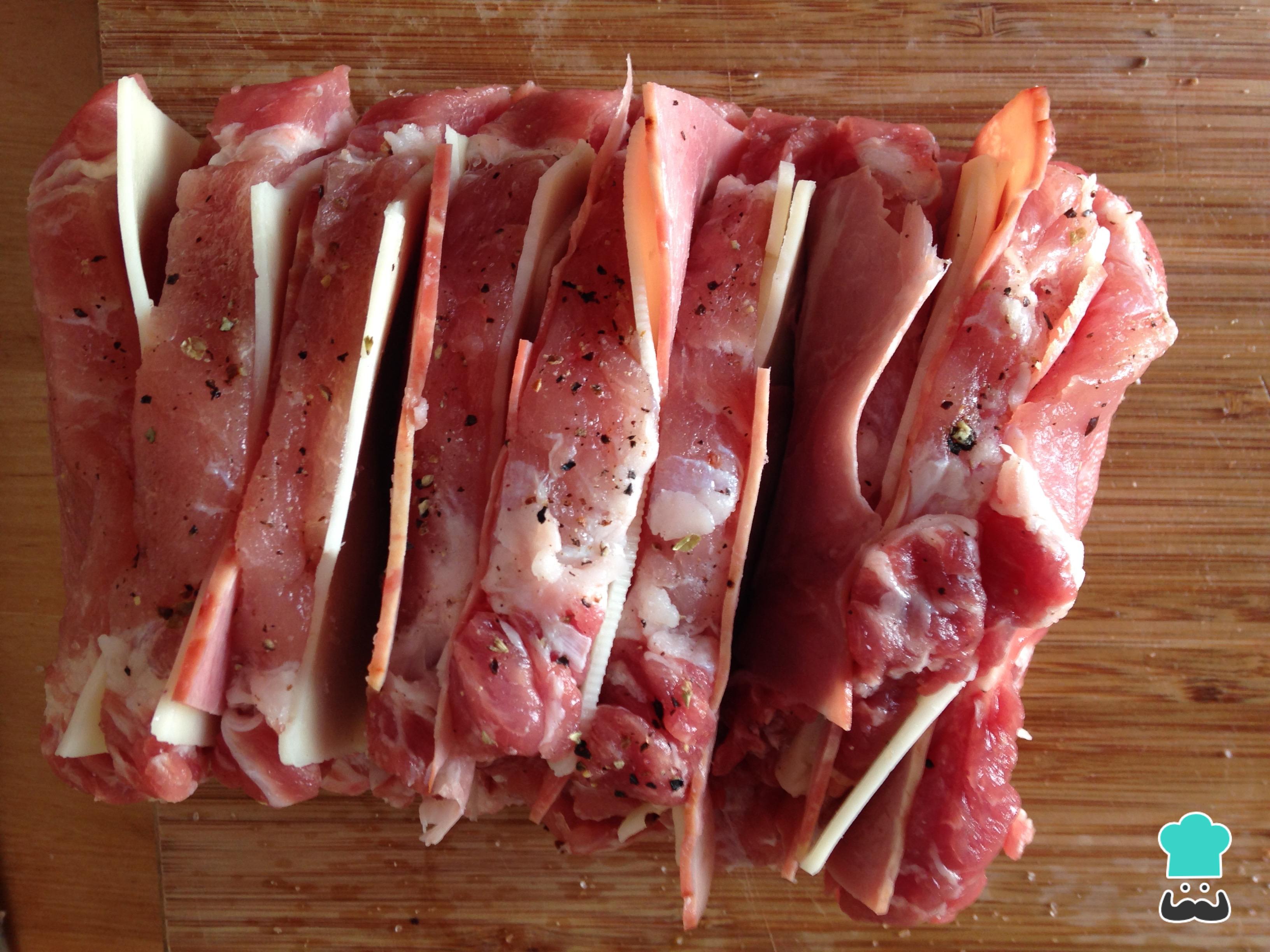 Cómo hacer Lomo de cerdo relleno con beicon y queso: