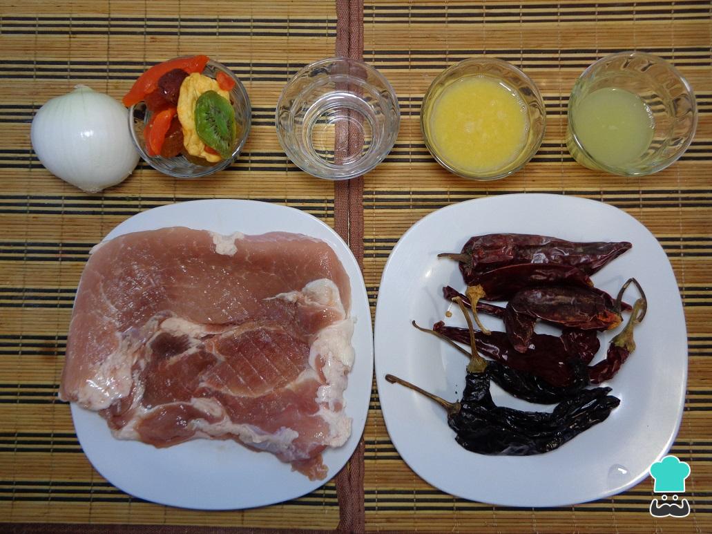 A continuación te presentamos los ingredientes que utilizaremos para preparar el lomo relleno enchilado al horno: