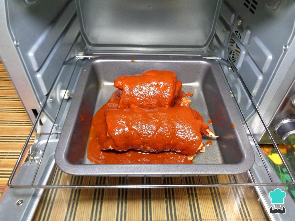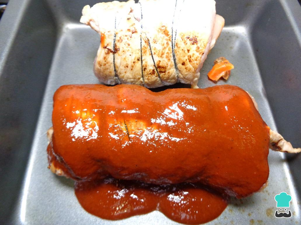 Horneamos el lomo relleno enchilado durante 40 minutos aproximadamente a 190°C.