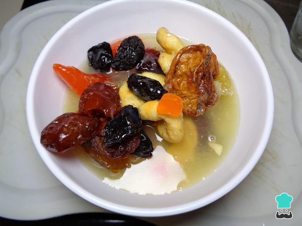 Regresando a la fruta seca, una vez suave la picamos en trozos medianos de aproximadamente 1.5 cm.