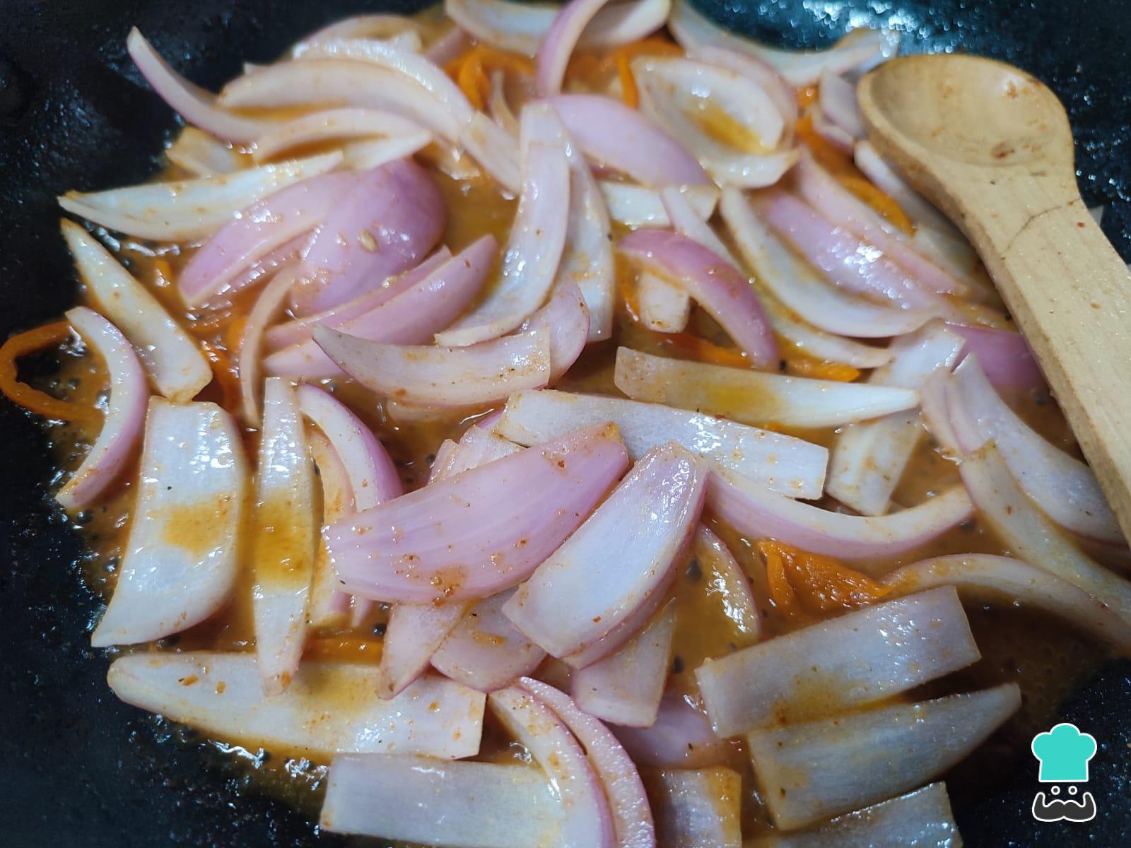 Truco: si consigues un fuego mucho más fuerte que el de una cocina convencional y también dispones de una sartén grande para saltear (wok), sería mucho mejor, ya que al saltear le aportarás un toque ahumado que realmente marcará la diferencia.