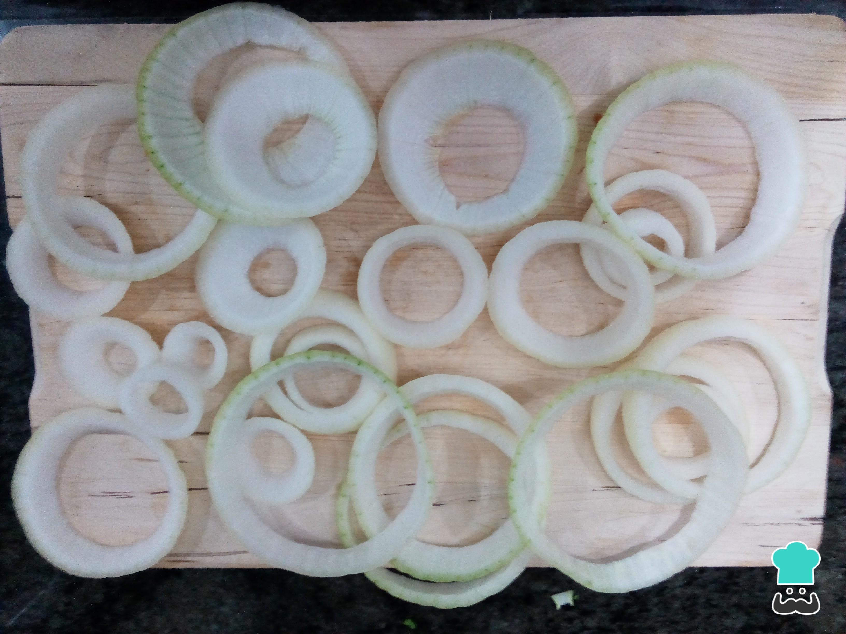 Corta las cebollas en rodajas, así como el pimiento, y corta el ajo en pedacitos pequeñitos. Colócalos en la bandeja. Hornea por unos 30 minutos a 180º C.