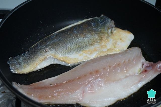 En una cazuela con un poco de aceite, doramos el pescado a fuego fuerte un minuto por cada lado. Sacamos y reservamos.