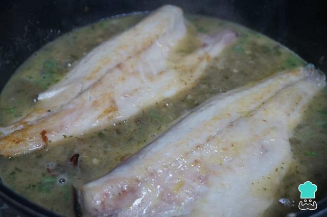 Pasado los 5 minutos apagamos el fuego y la la lubina en salsa de vino blanco estará lista para servir.