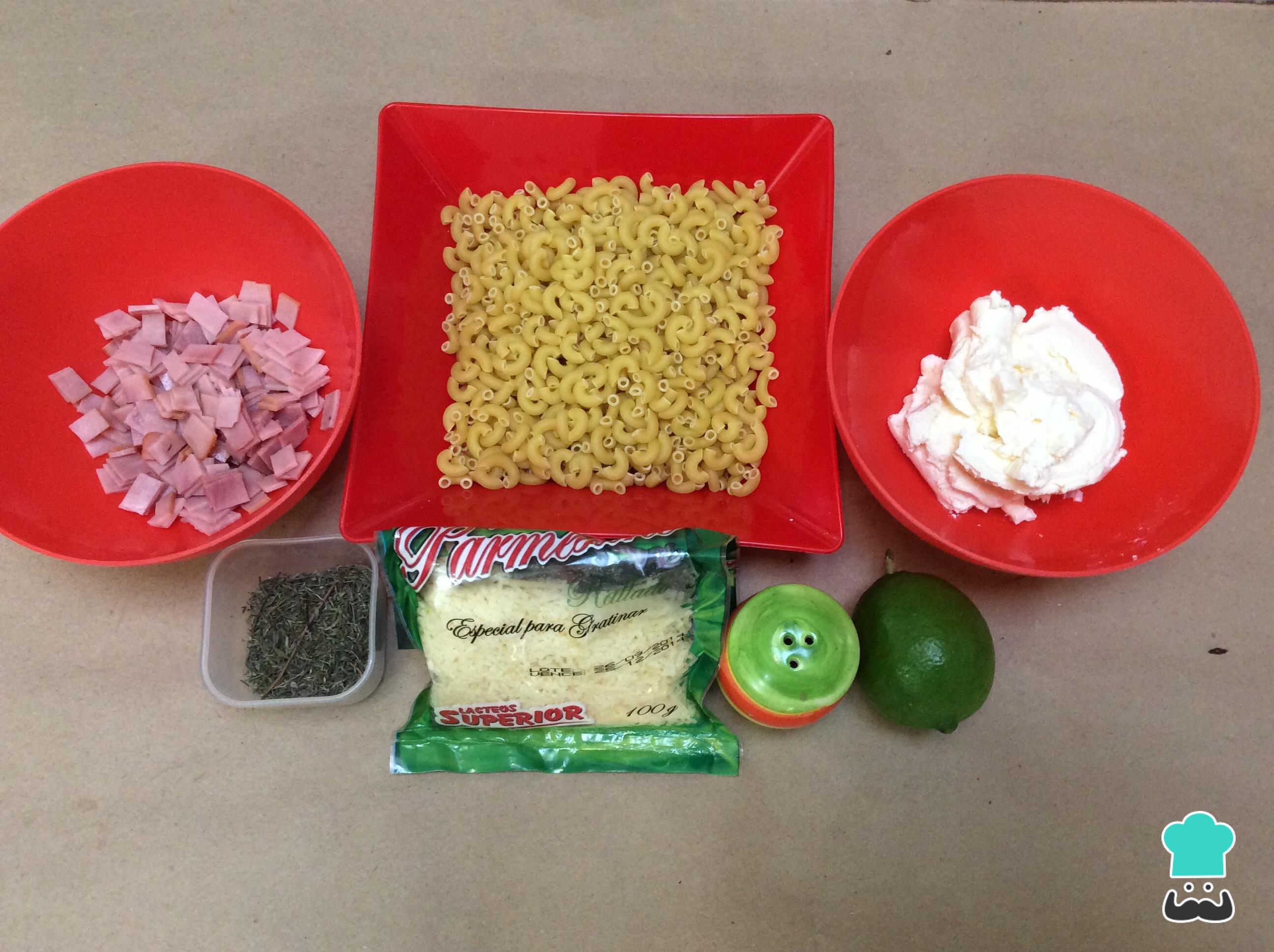 Para preparar esta receta de macarrones con crema agria y tomillo lo primero que debes hacer es alistar todos los ingrdientes.