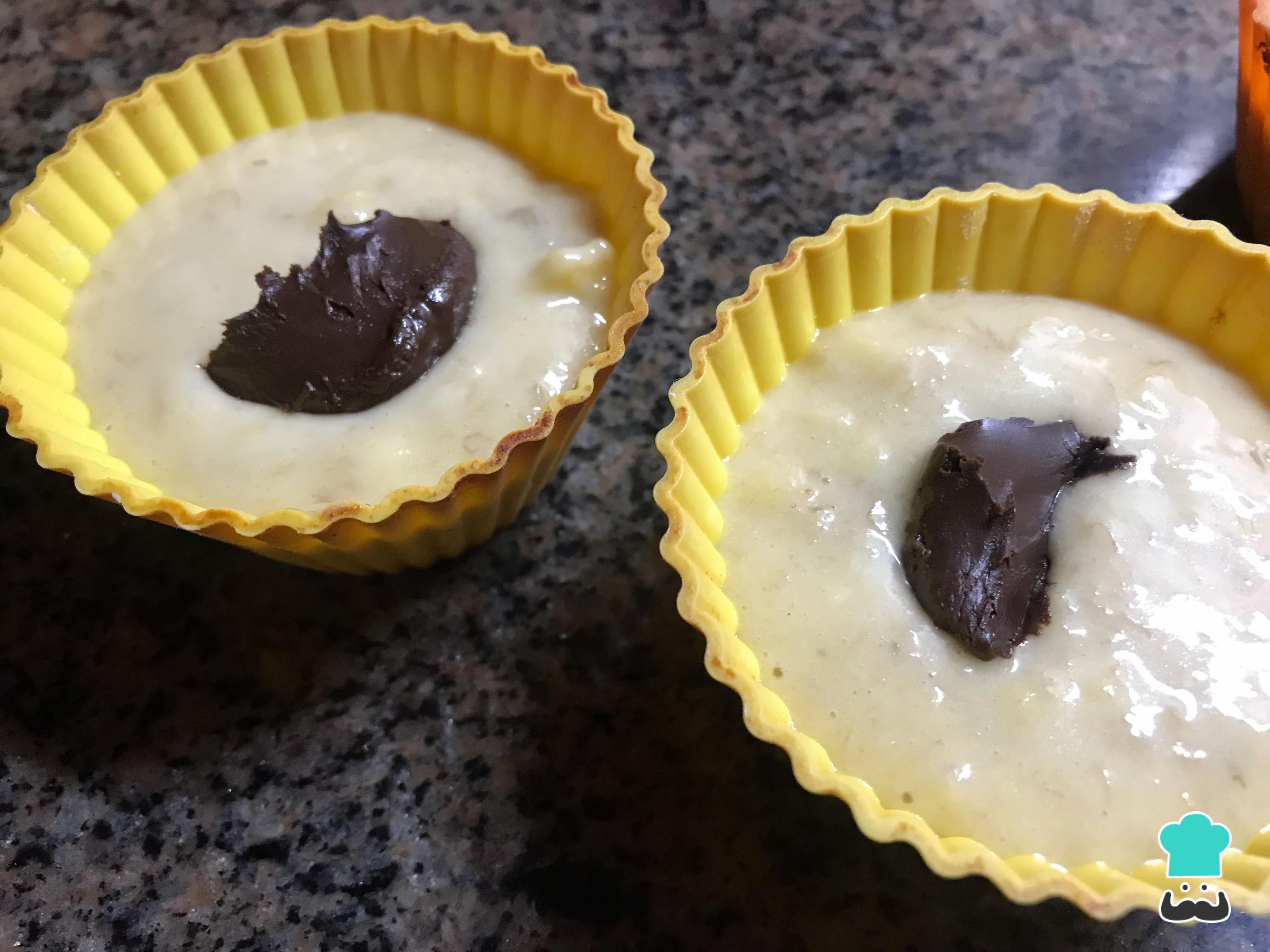 Si lo deseas, puedes agregar un corazón de chocolate fundido, dulce de leche o mermelada. Cocínalos de 2 en 2 unidades por 1 minuto y medio o 2 minutos con el microondas a potencia máxima. Y, para comprobar que están cocidas, pínchalas con un palillo o cuchillo. Si no salen restos de la preparación, estarán hechas.