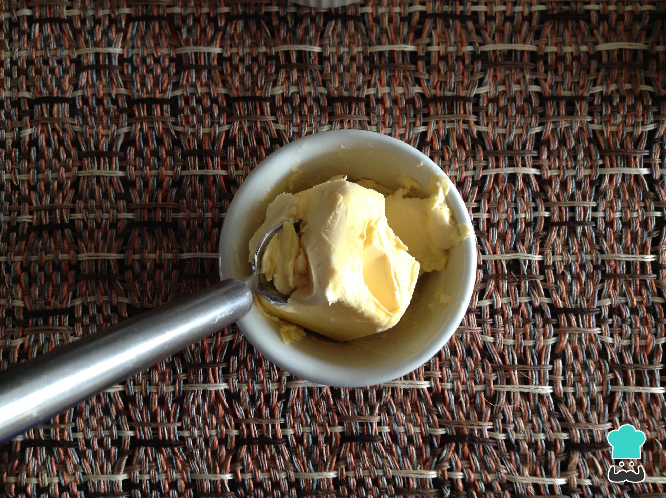 Con la ayuda de una cuchara suavizar o pomar la mantequilla hasta que este blanda.