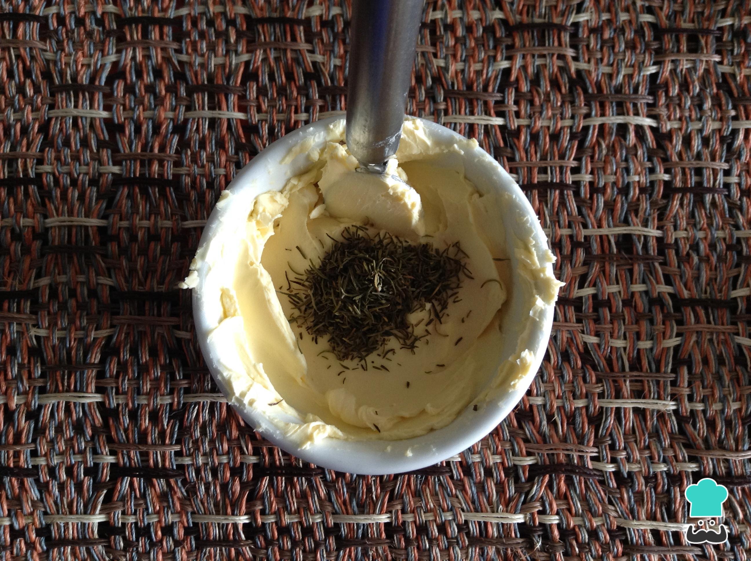 Adicionar el romero seco y mezclar bien hasta que se distribuya por toda la mantequilla.