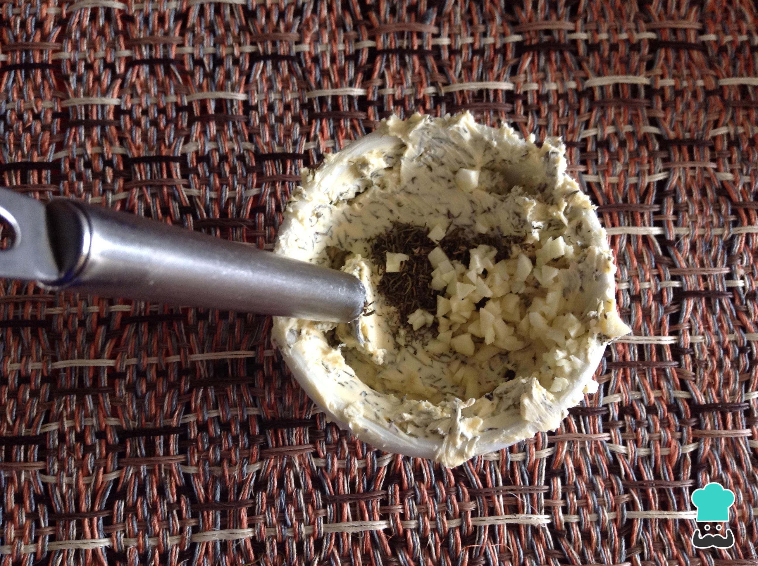 Adicionar el ajo finamente picado junto con la sal y la pimienta a la mantequilla. Mezclar muy bien hasta integrar todos los ingredientes.
