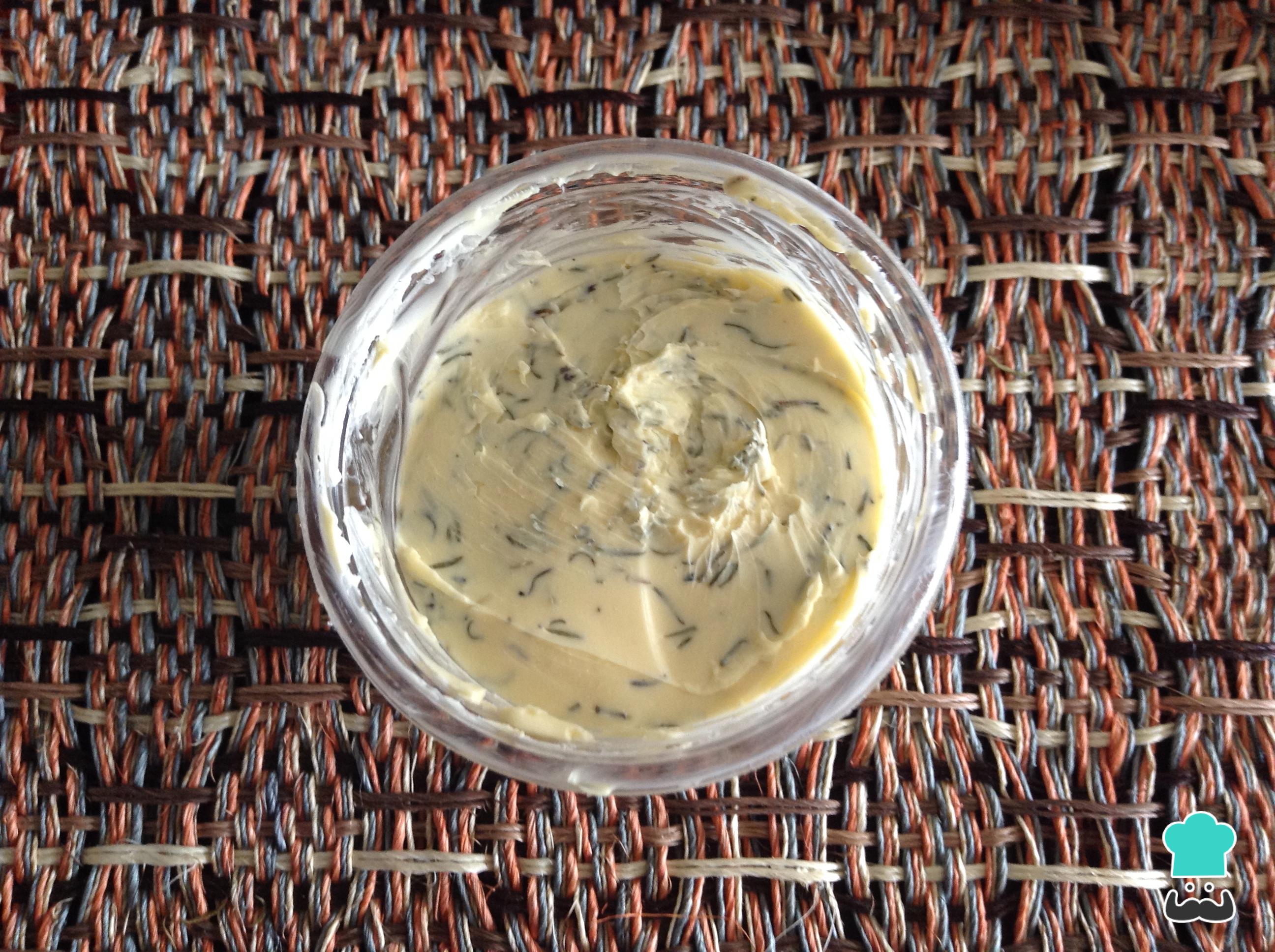 Llevar nuestra mantequilla de romero a un recipiente plástico y con la ayuda de una cuchara darle forma para que quede bien en el recipiente. Llevar a la nevera o refrigerador durante una o dos horas hasta que endurezca nuevamente.