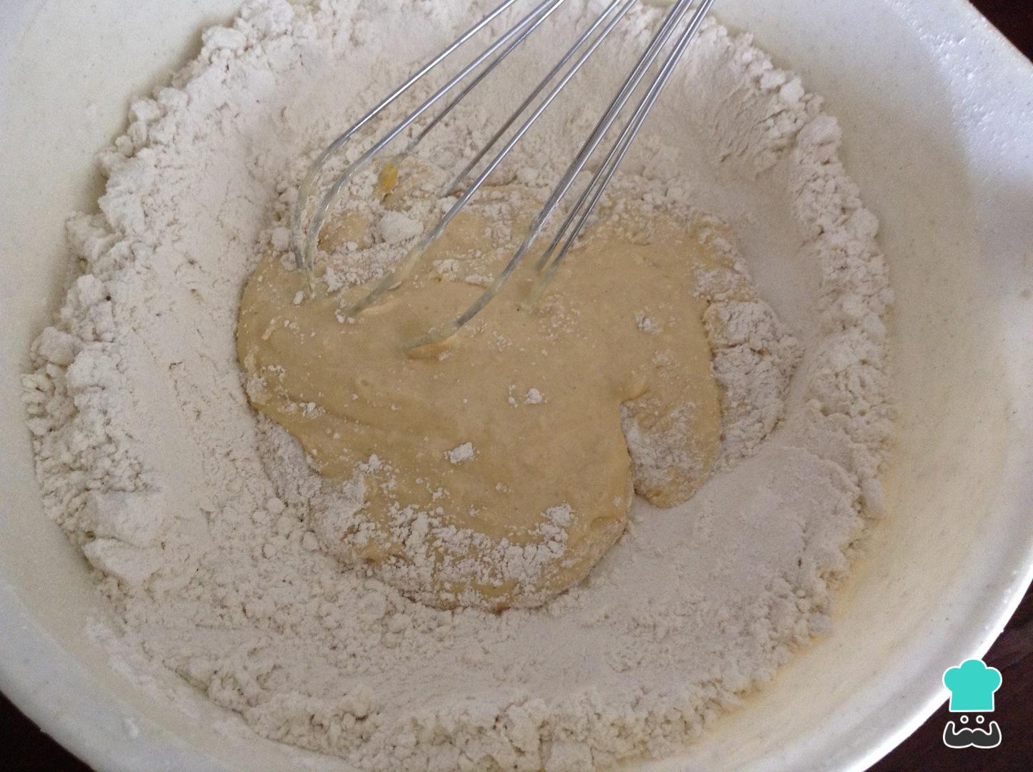 Una vez observes que puedes amasar con la mano, amasa integrando todos los ingredientes.