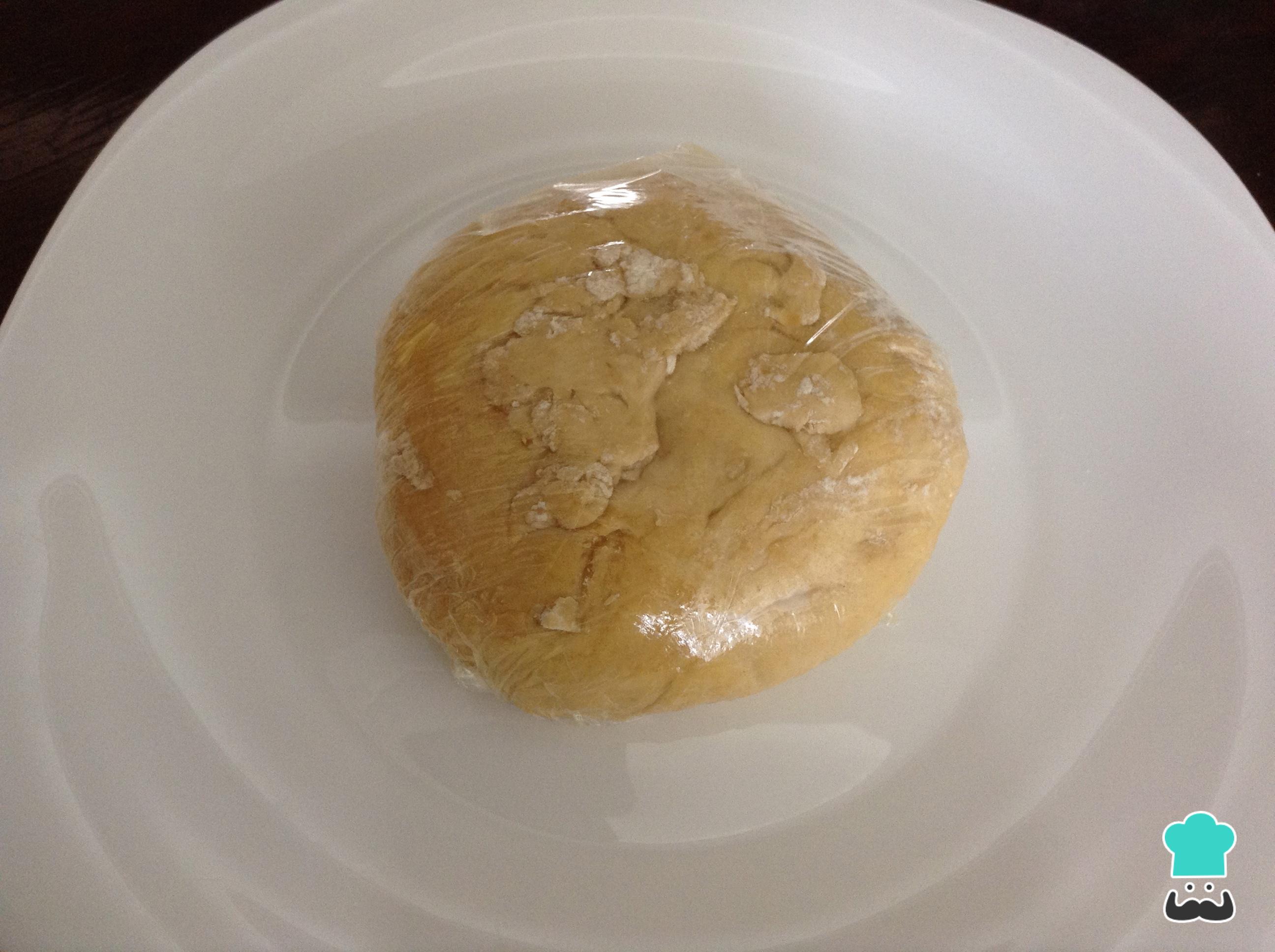 Haz una bola y cubre la masa quebrada con papel film y resérvala en la nevera o refrigerador durante 30 minutos aproximadamente.