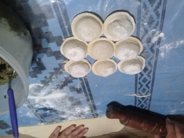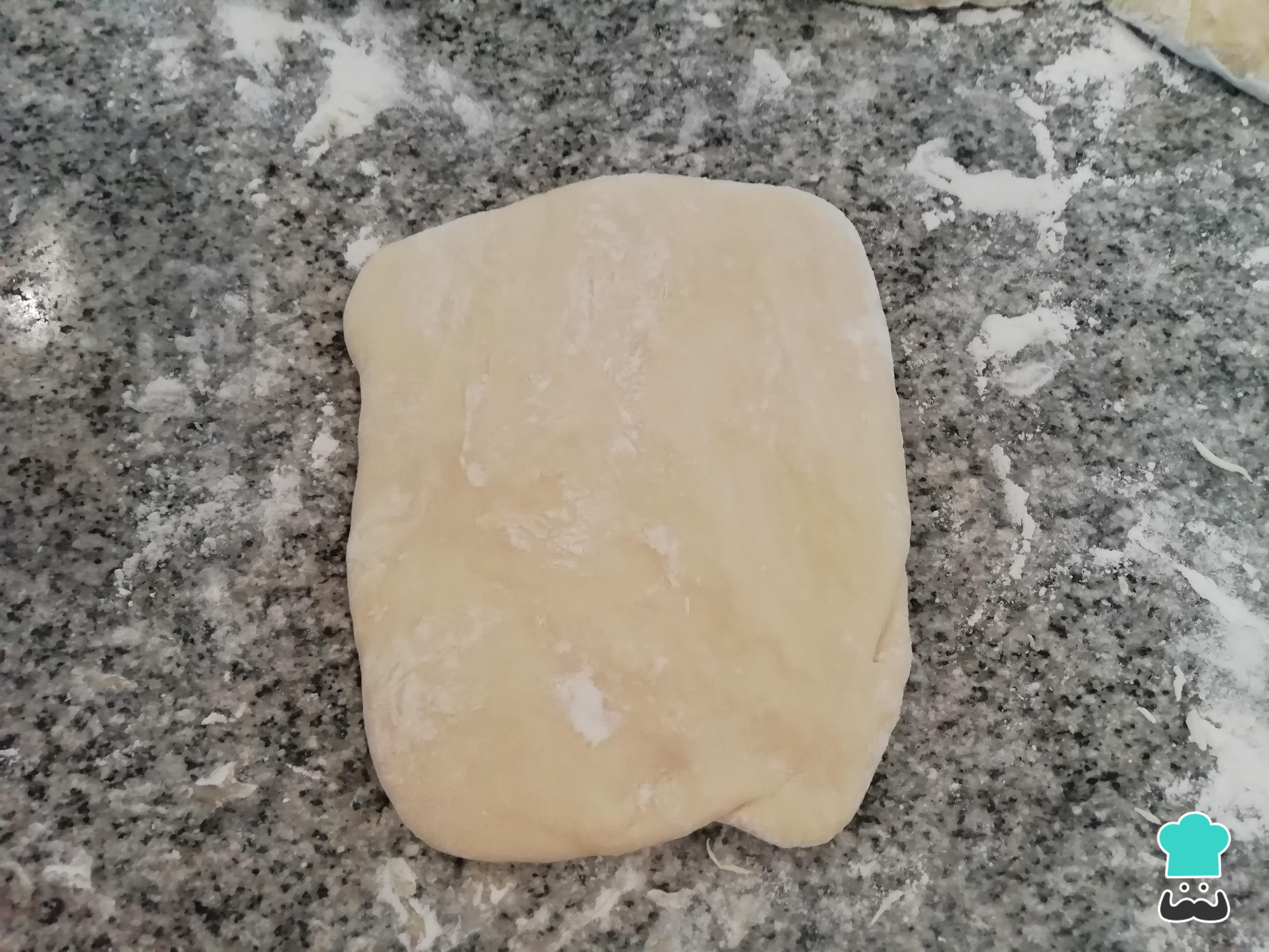 Luego, las porciones las aplastamos un poco con la mano, casi haciendo un rectángulo.